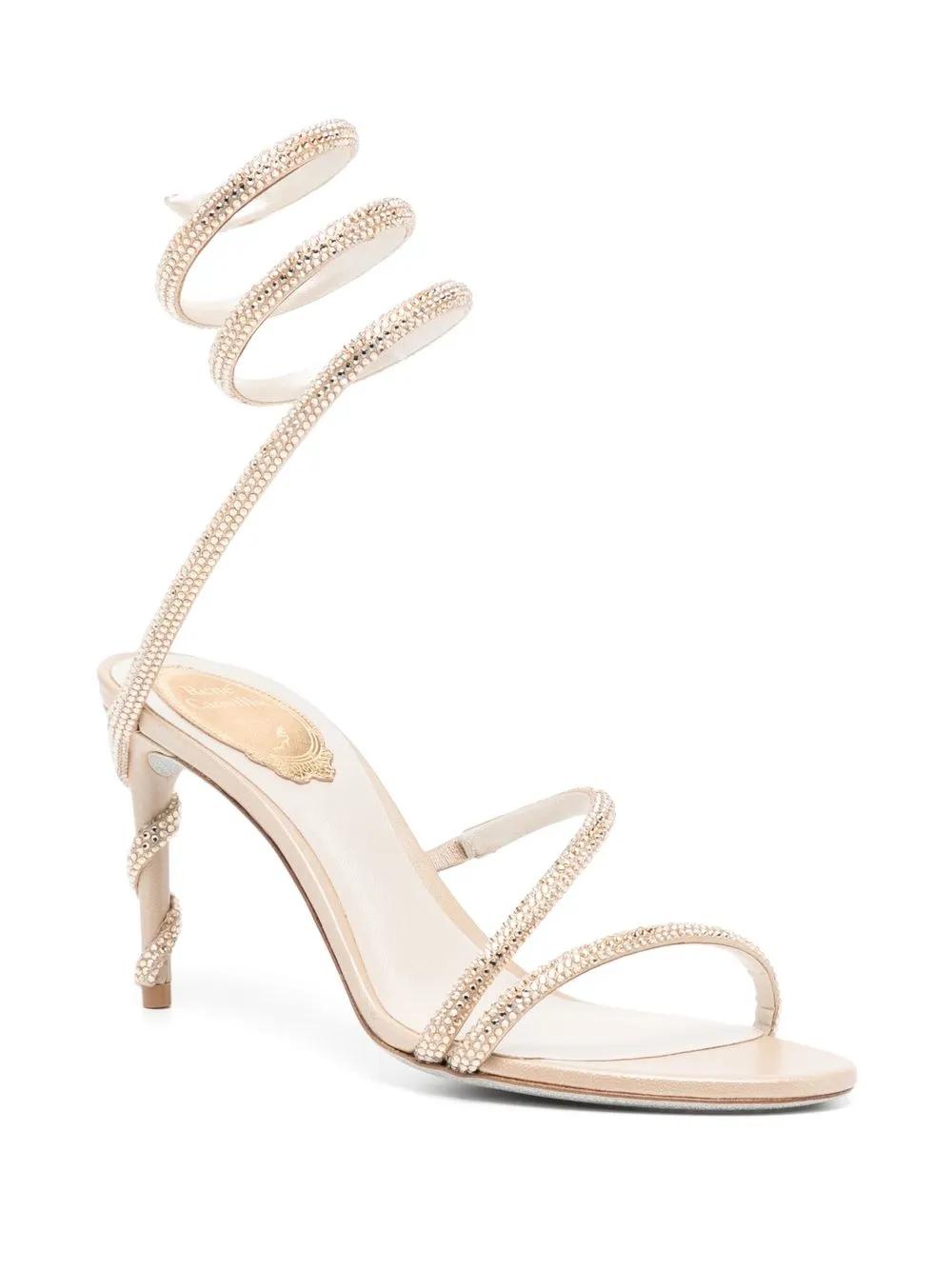 champagne silk crystal embellishment open toe branded insole mid heel leather outsole