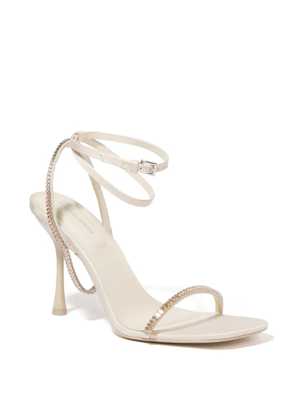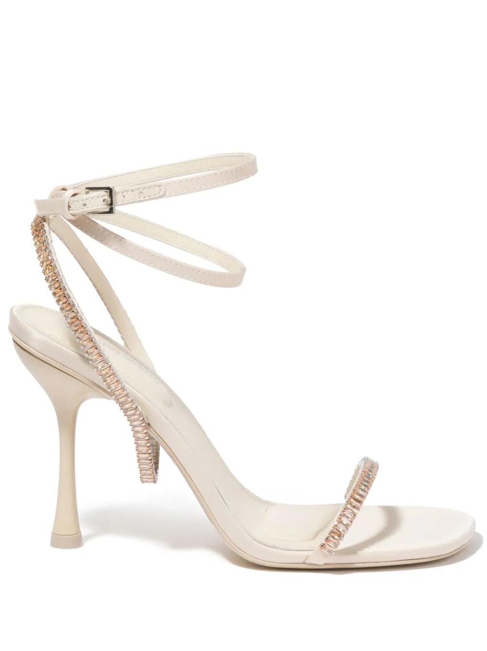 vanilla white leather crystal-embellished ankle strap thin straps open toe buckle-fastening ankle strap branded leather insole high stiletto heel