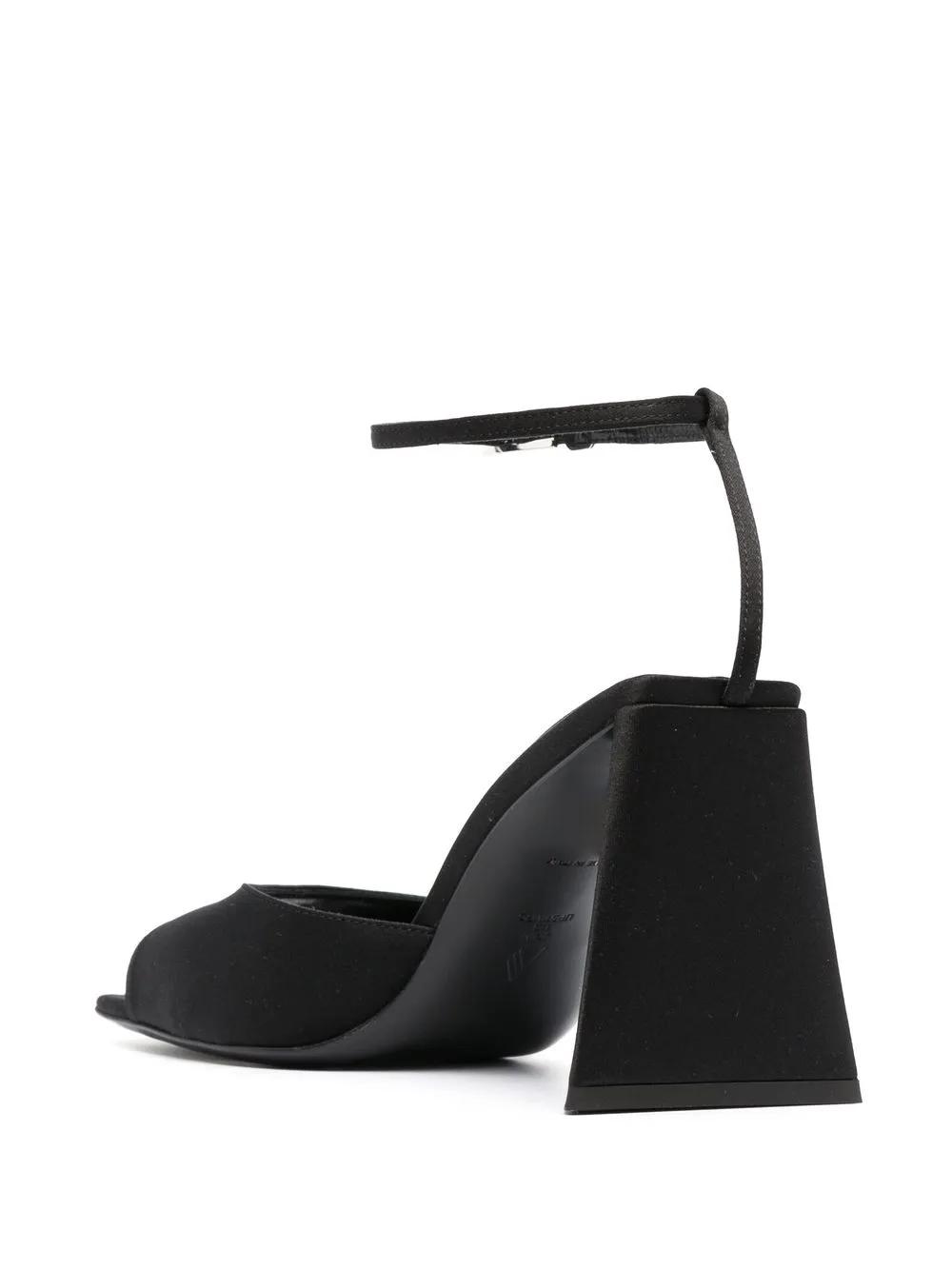 black calf leather satin finish buckle-fastening ankle strap square toe branded leather insole