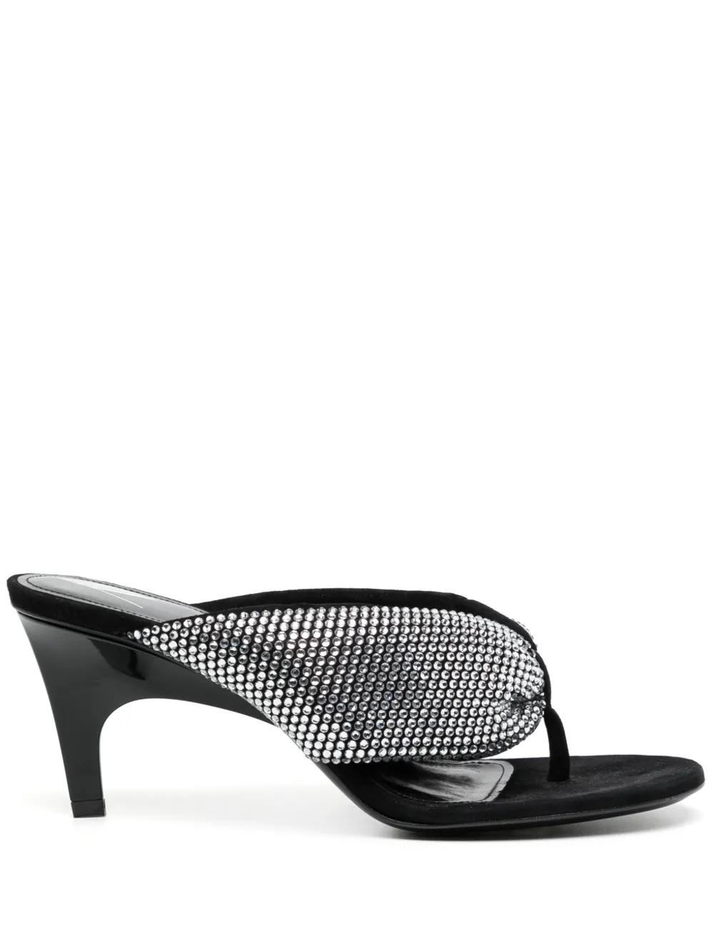 The Attico rhinestone-embellished leather 70mm sandals - Black