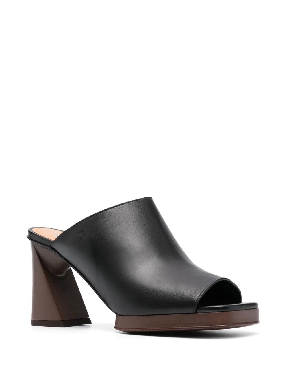 black calf leather high sculpted heel branded footbed open toe square toe slip-on style