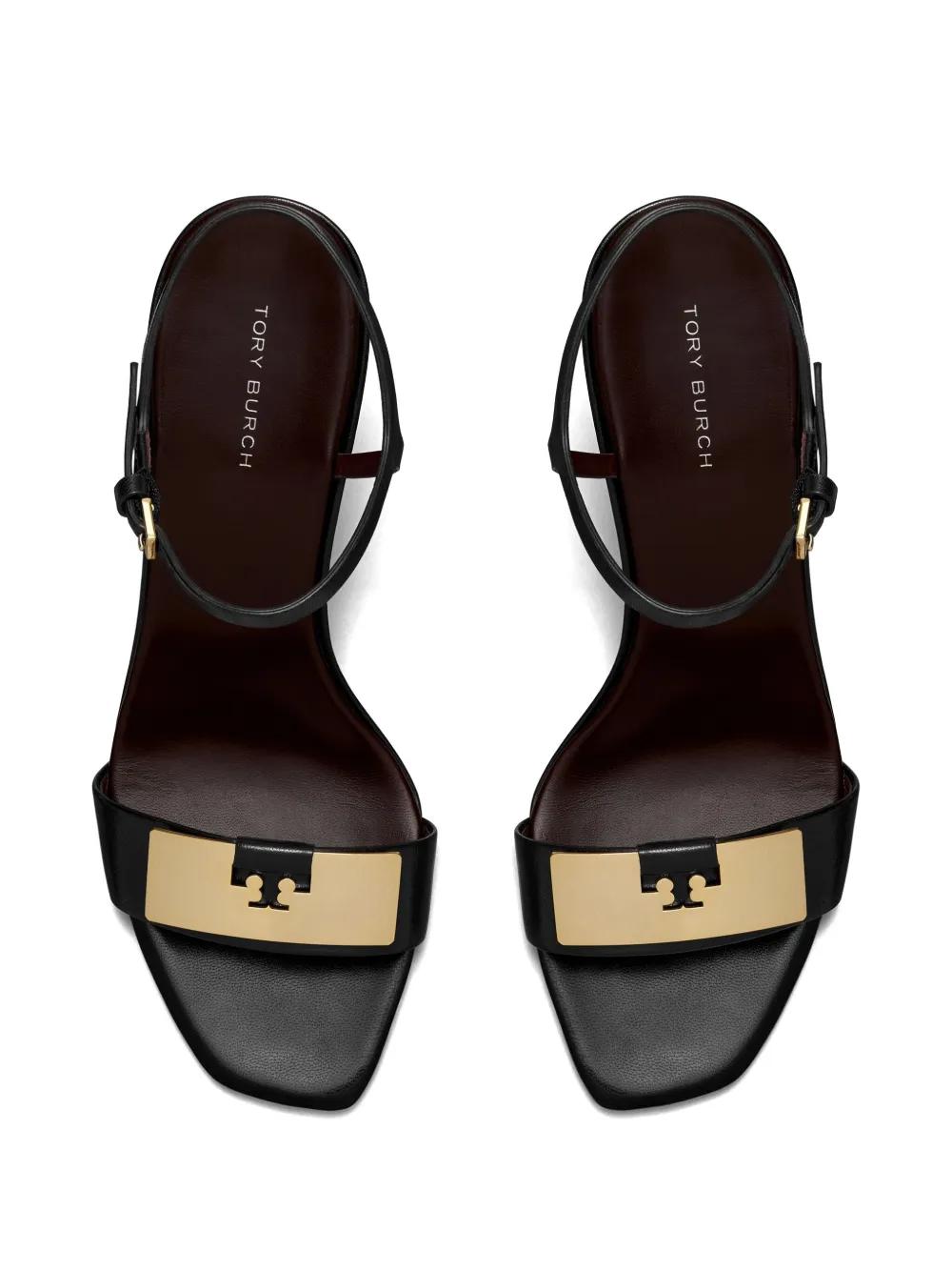 black buckle-fastening ankle strap high wedge heel square open toe rubber outsole