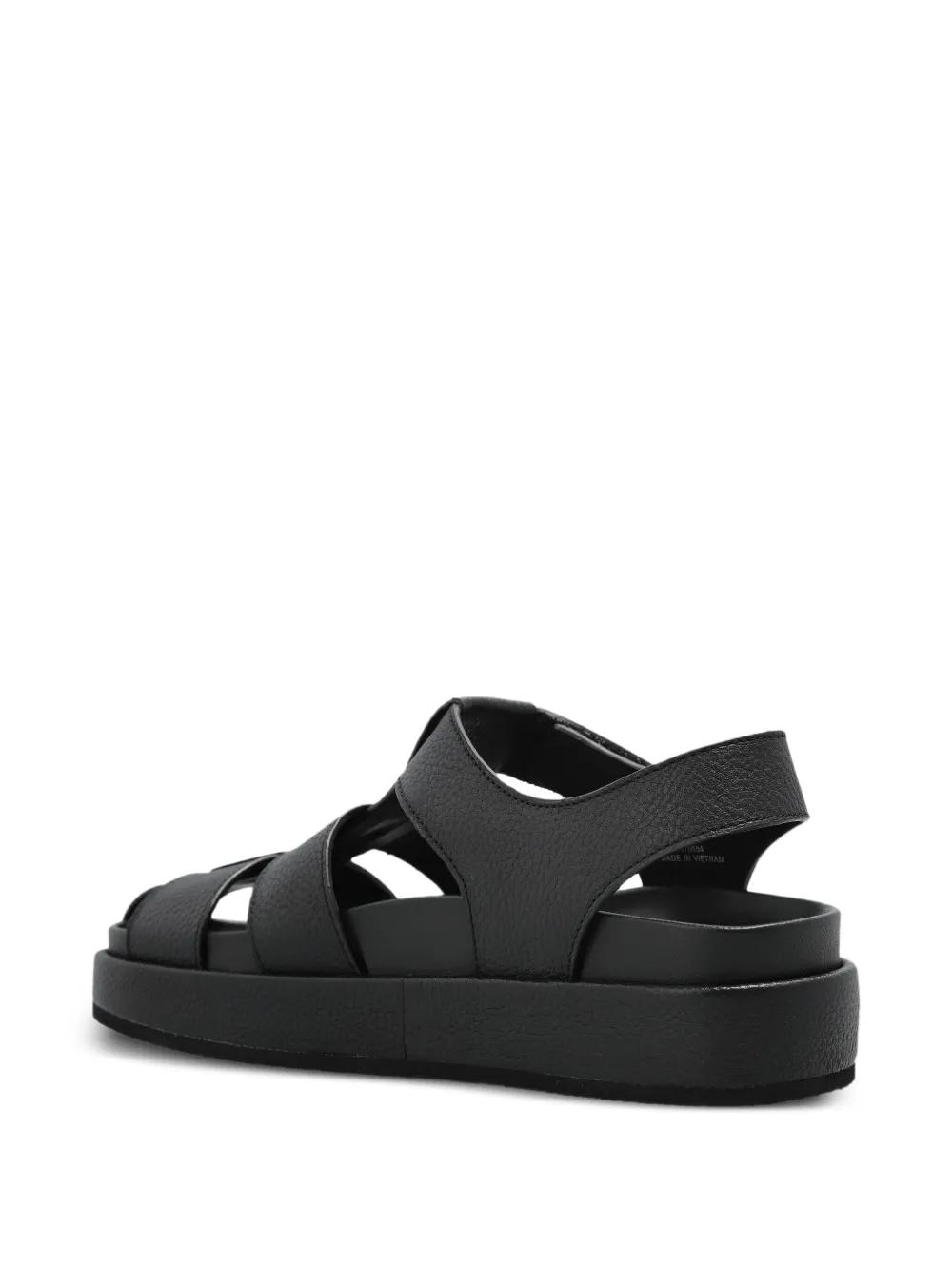 black multiple strap design logo detailing cushioned sole open toe flat base