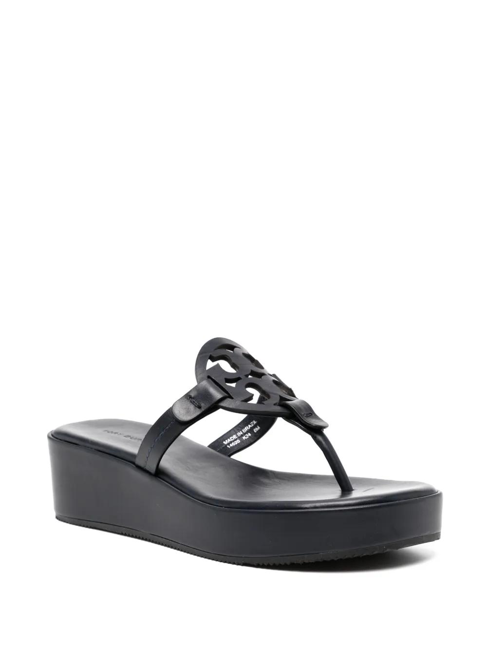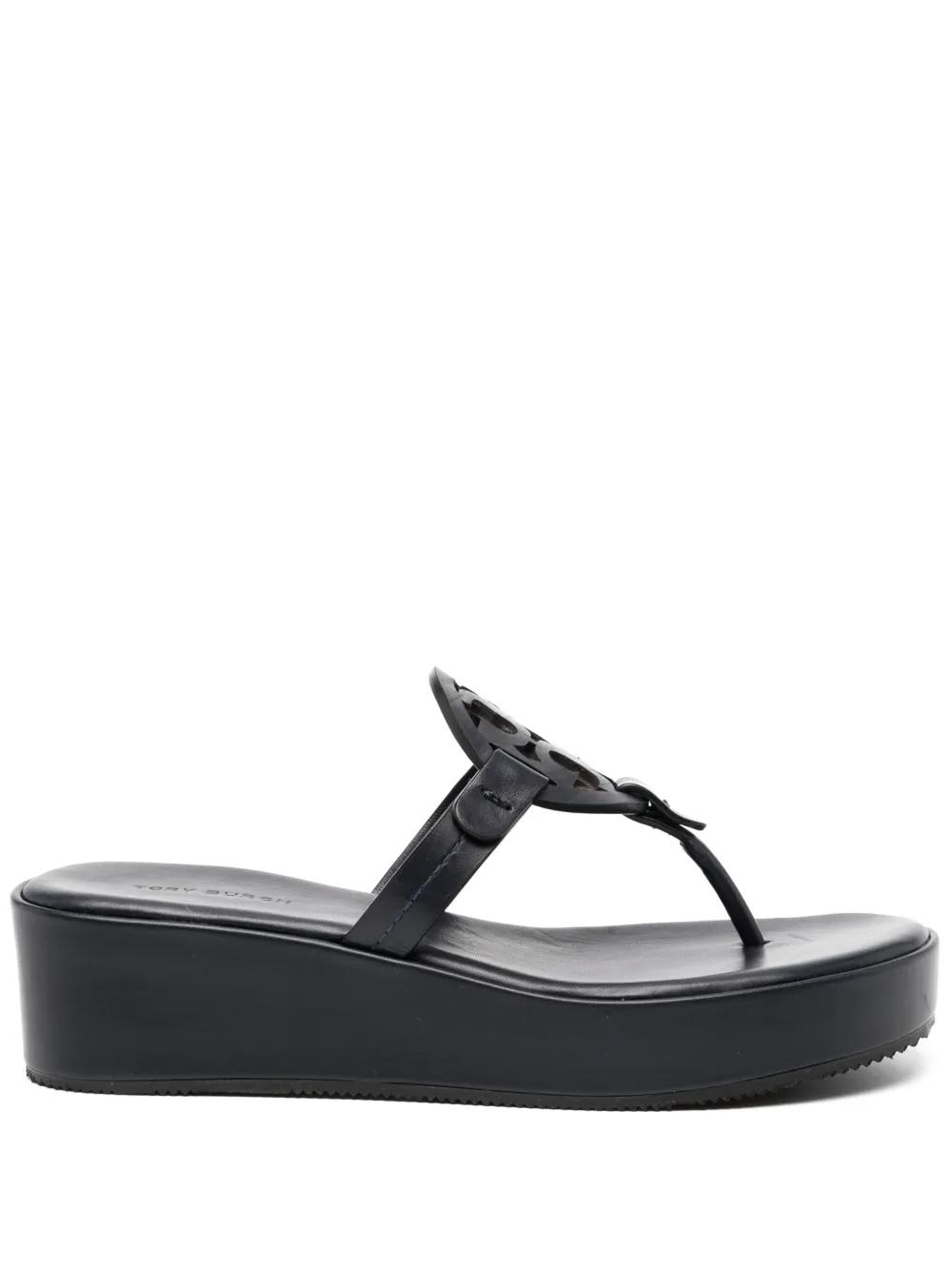 black bovine leather open toe slip-on style branded insole silver-tone hardware flat sole