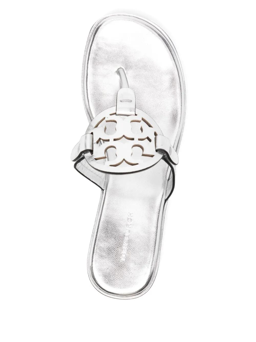 black bovine leather open toe slip-on style branded insole silver-tone hardware flat sole