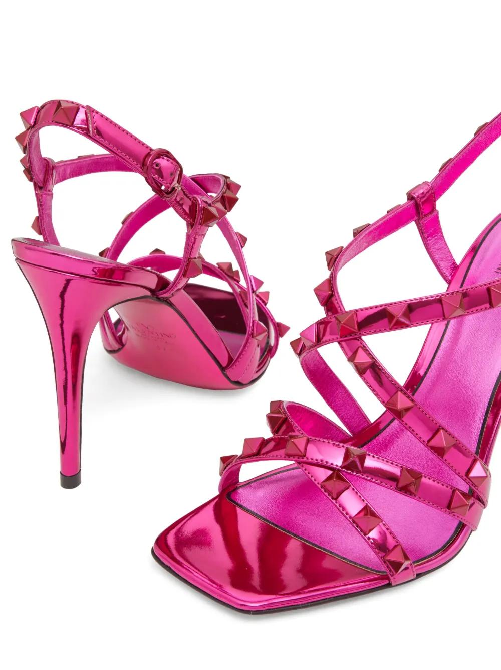 Valentino Garavani 100mm Rockstud mirrored sandals - Pink