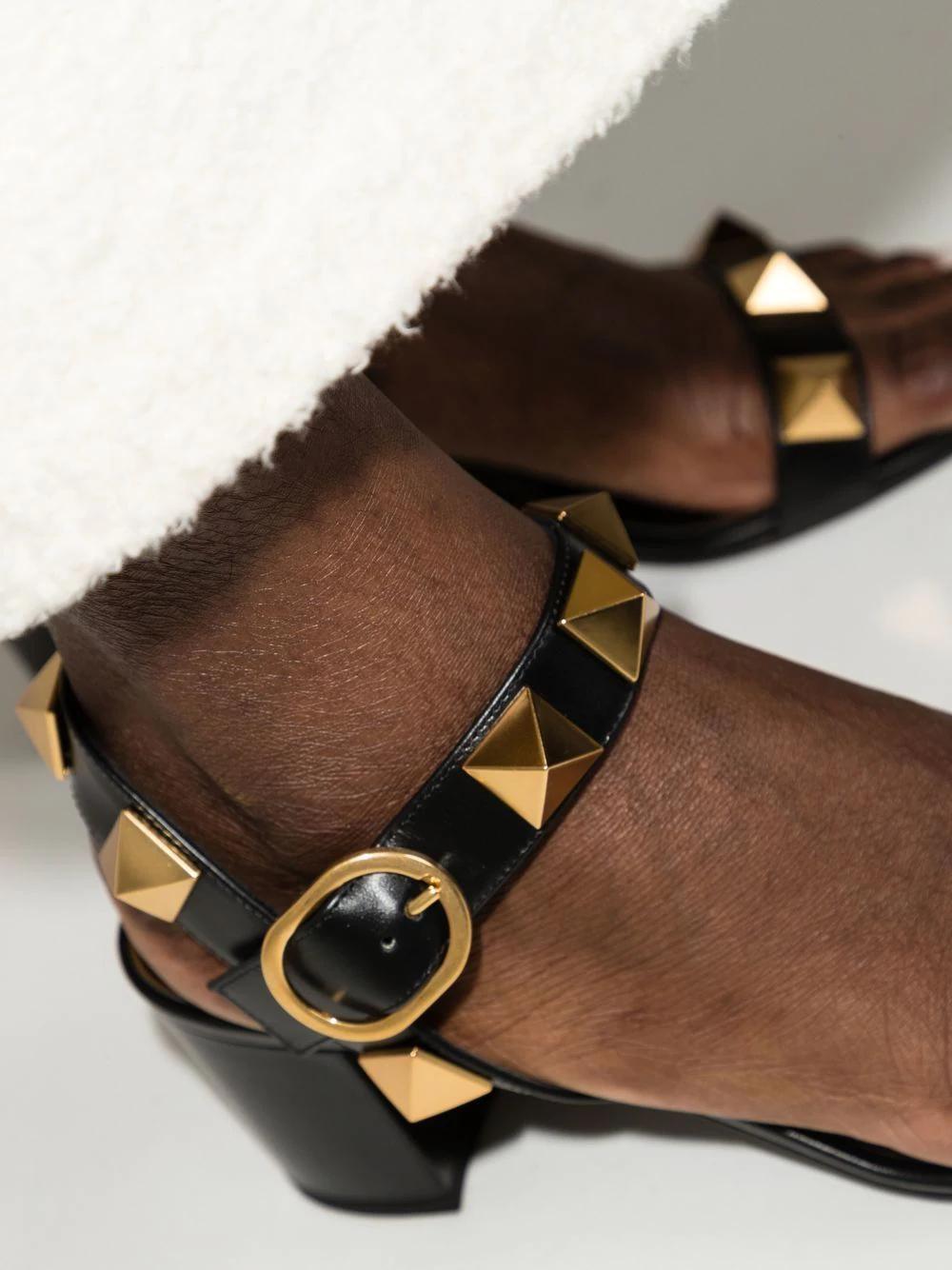 black leather signature Roman Stud detailing branded insole buckle-fastening ankle strap 60mm block heel