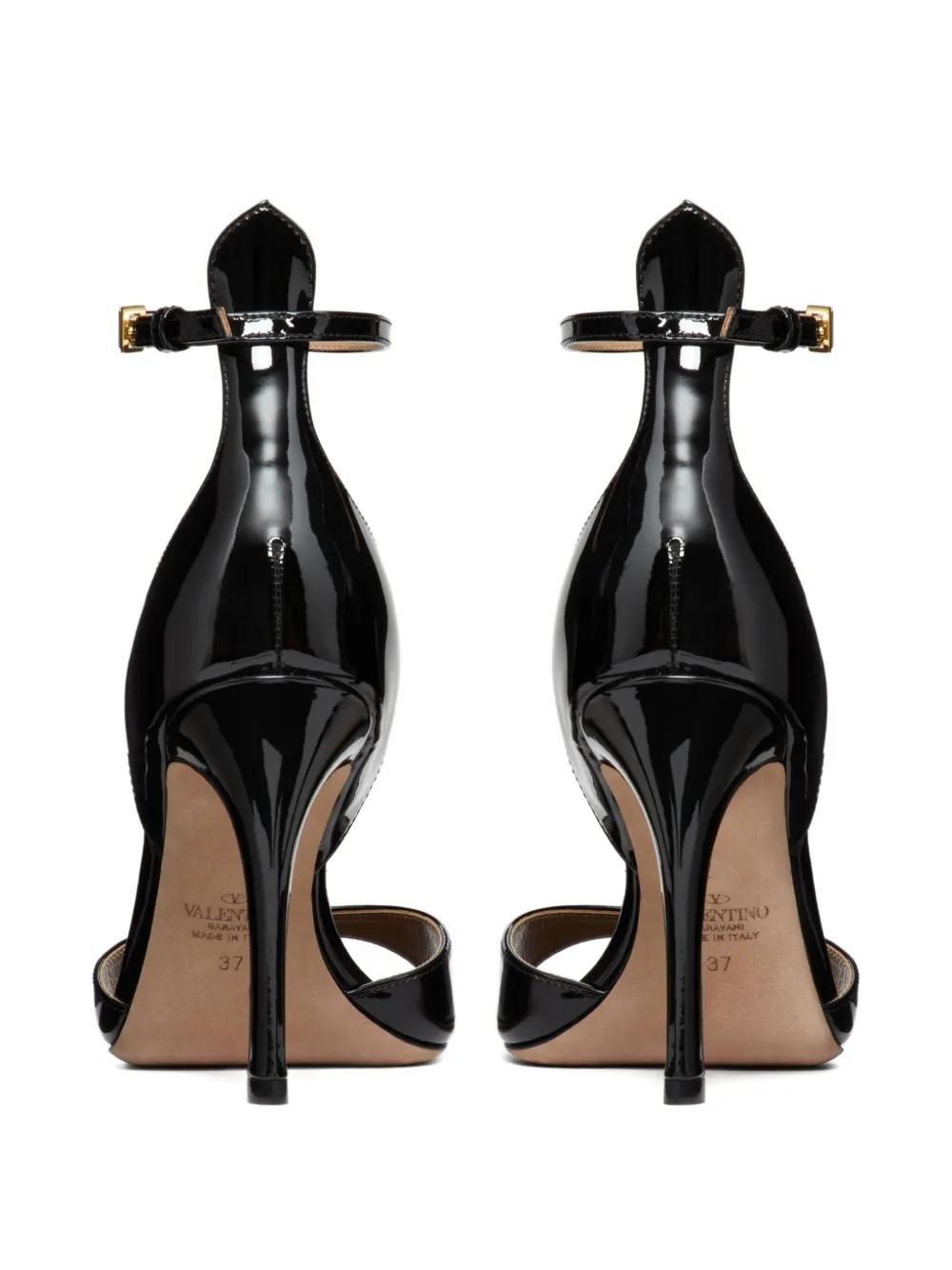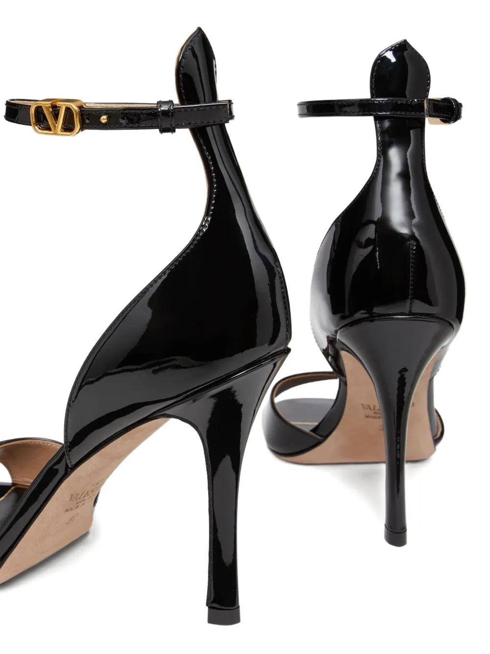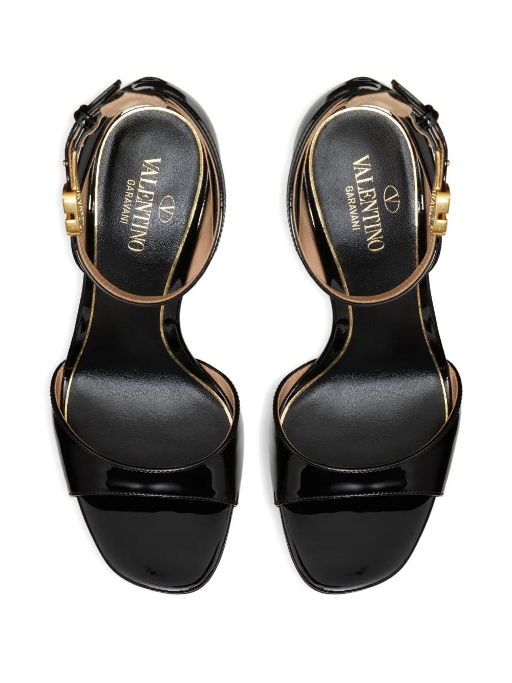 black calf leather patent finish VLogo Signature open toe buckle-fastening ankle strap branded heel counter 100mm stiletto heel