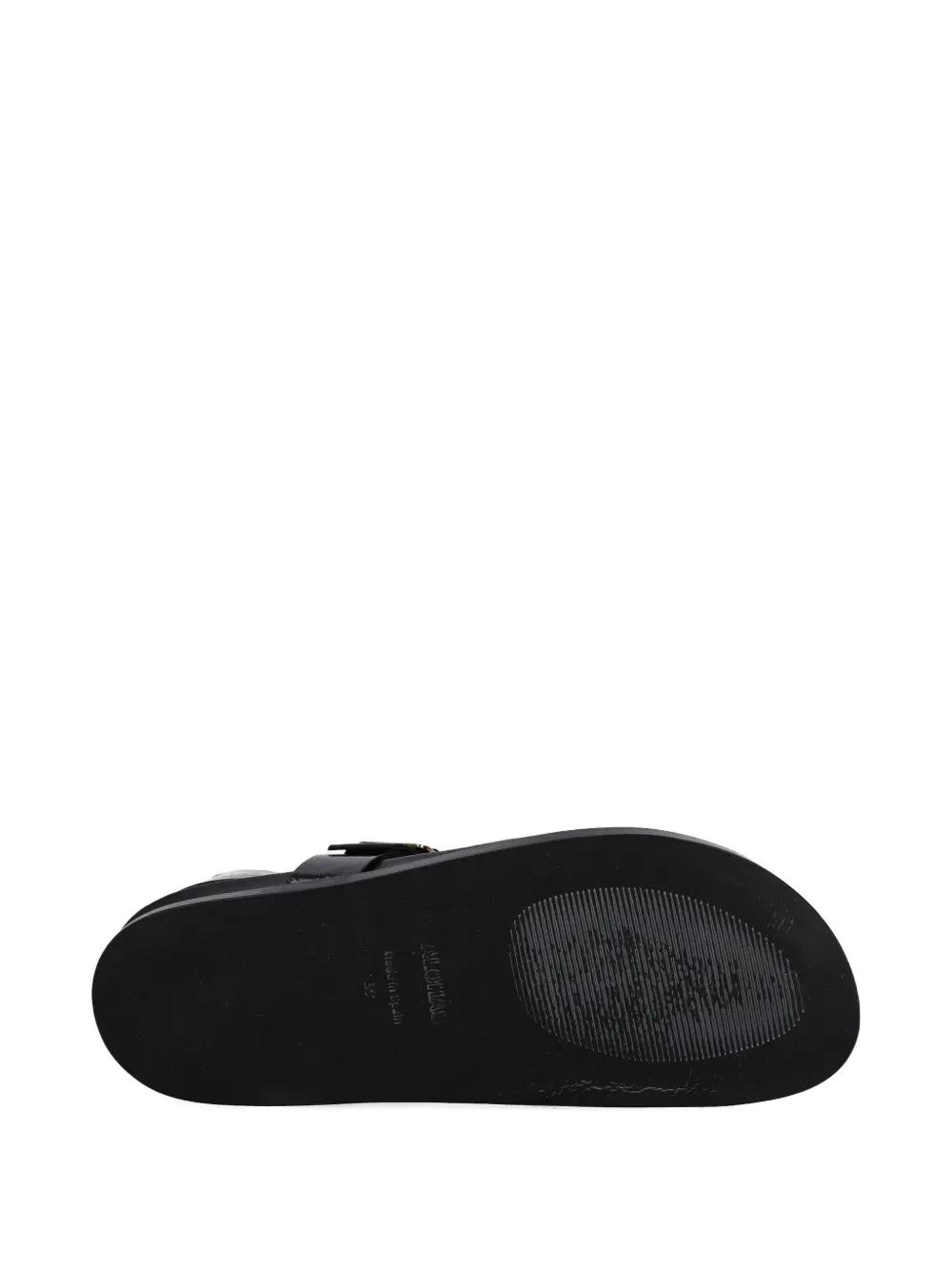 black leather caged design square open toe buckle-fastening ankle strap low heel flat sole