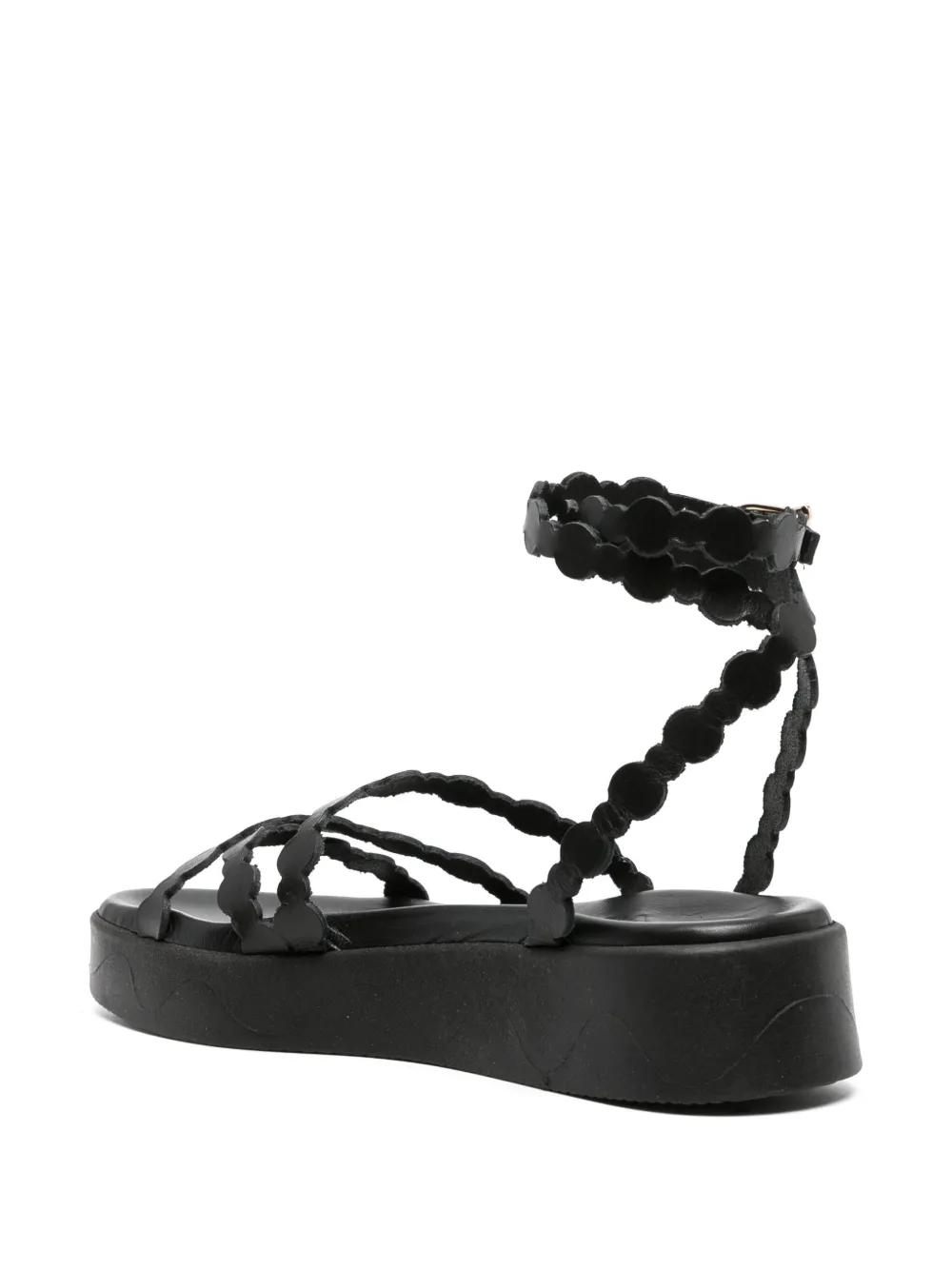 black calf leather circle motif open toe crossover strap detail buckle-fastening ankle strap branded insole flatform sole