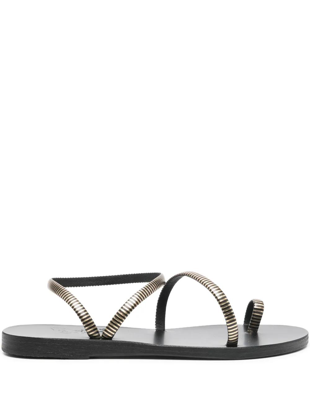 black toe post strap detail flat sole wraparound ankle strap gold-tone detail
