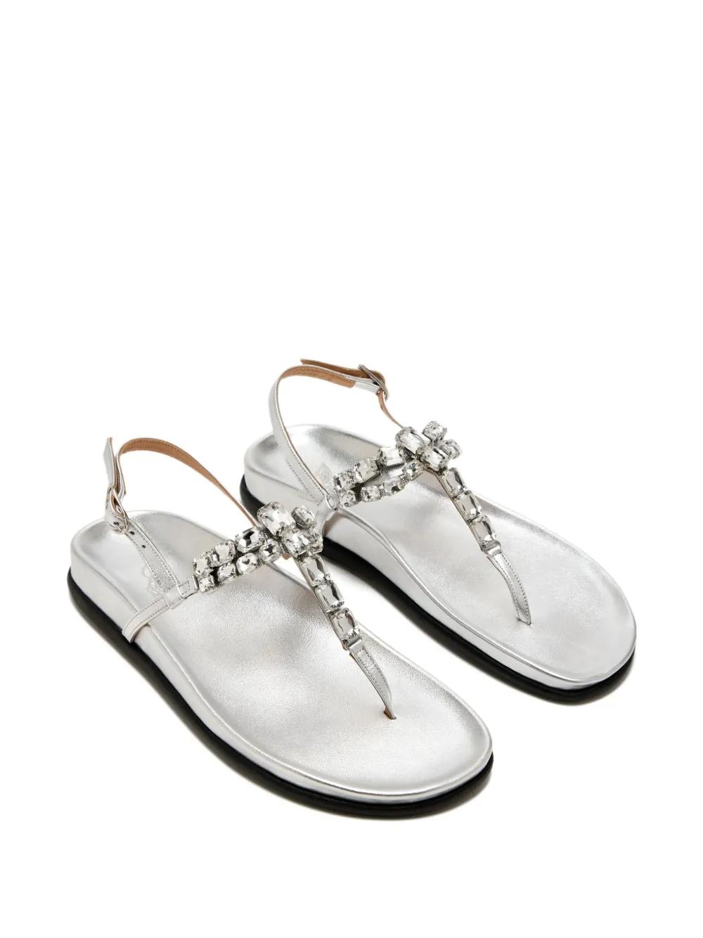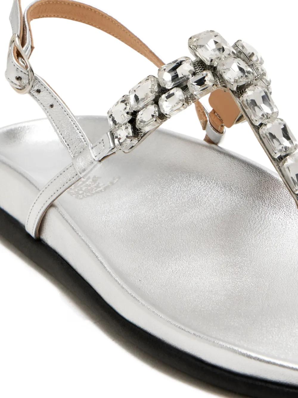silver leather upper crystal embellishment ankle strap buckle fastening flat sole