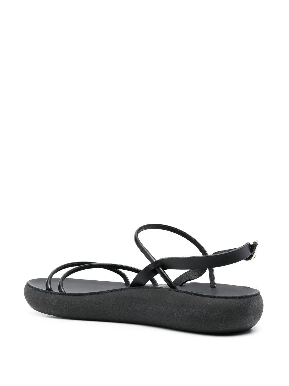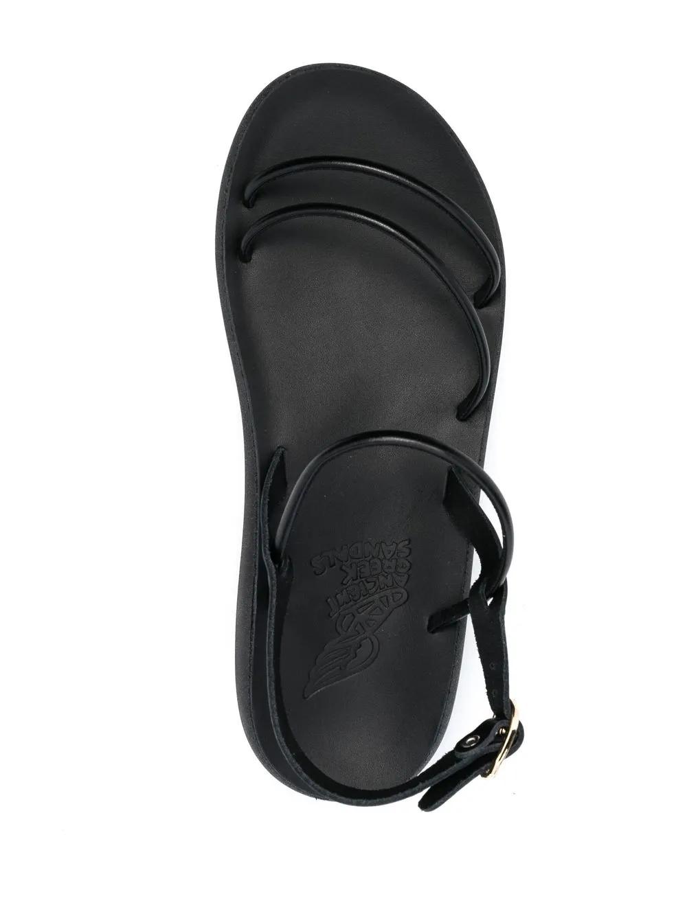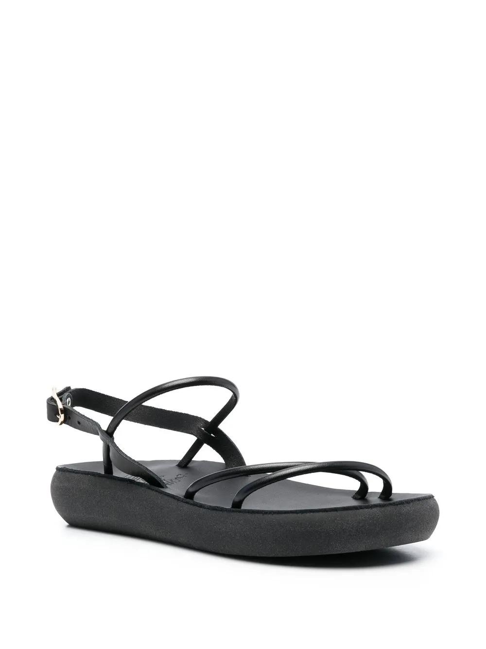 black calf leather buckle-fastening slingback strap crossover strap detail open toe flat rubber sole