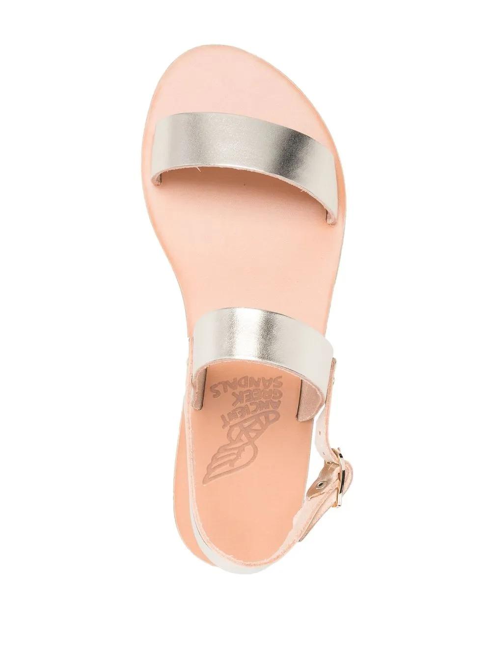 gold-tone calf leather metallic finish open toe flat sole