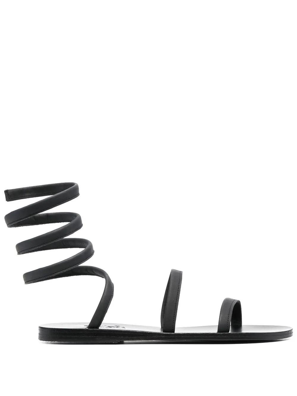 black calf leather double-strap design tie-fastening ankle strap open toe flat sole