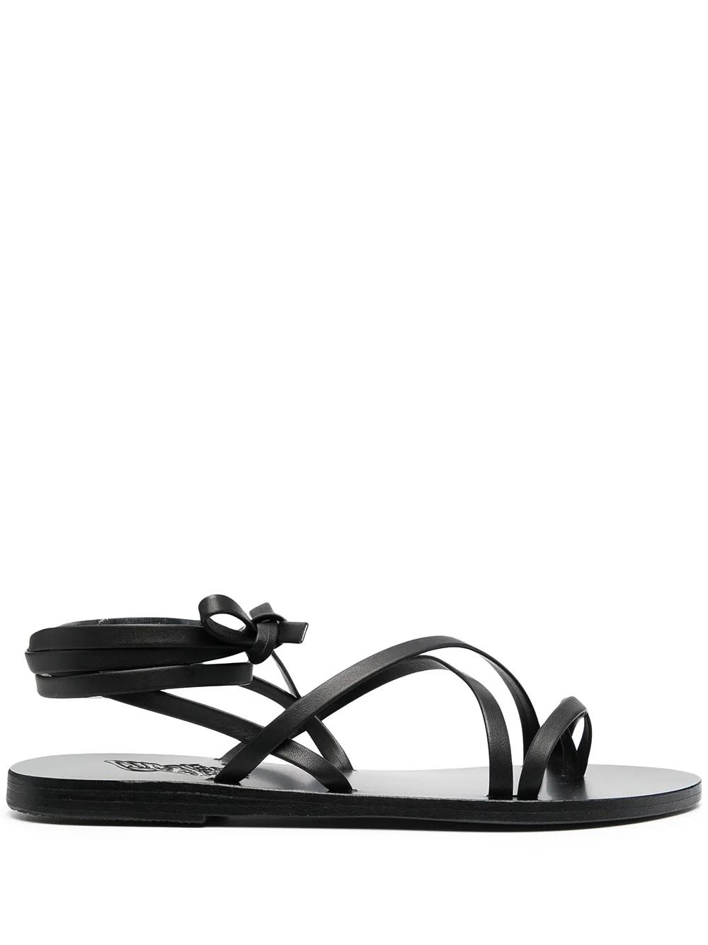 black leather open toe branded leather insole tie-fastening ankle strap flat sole
