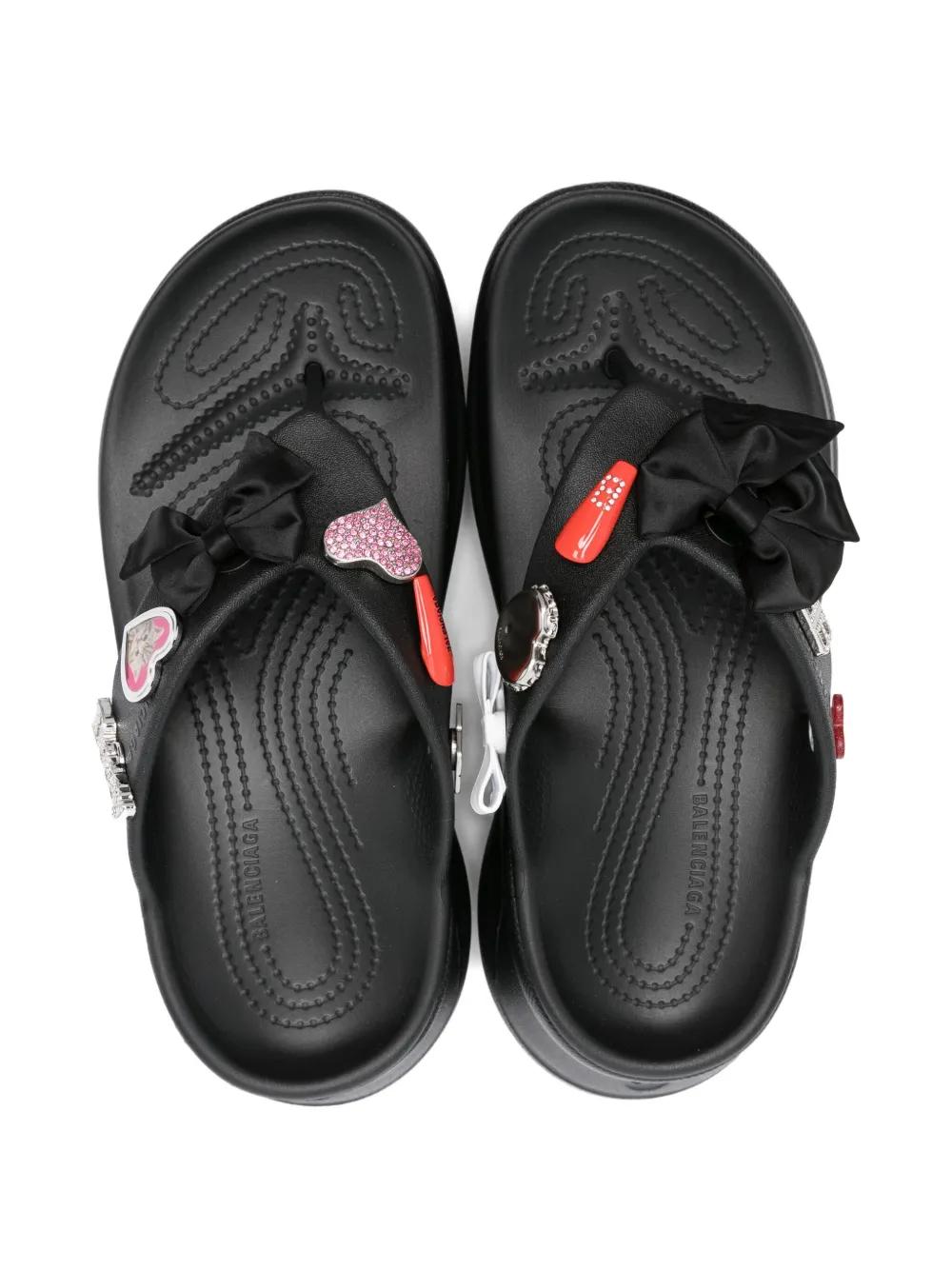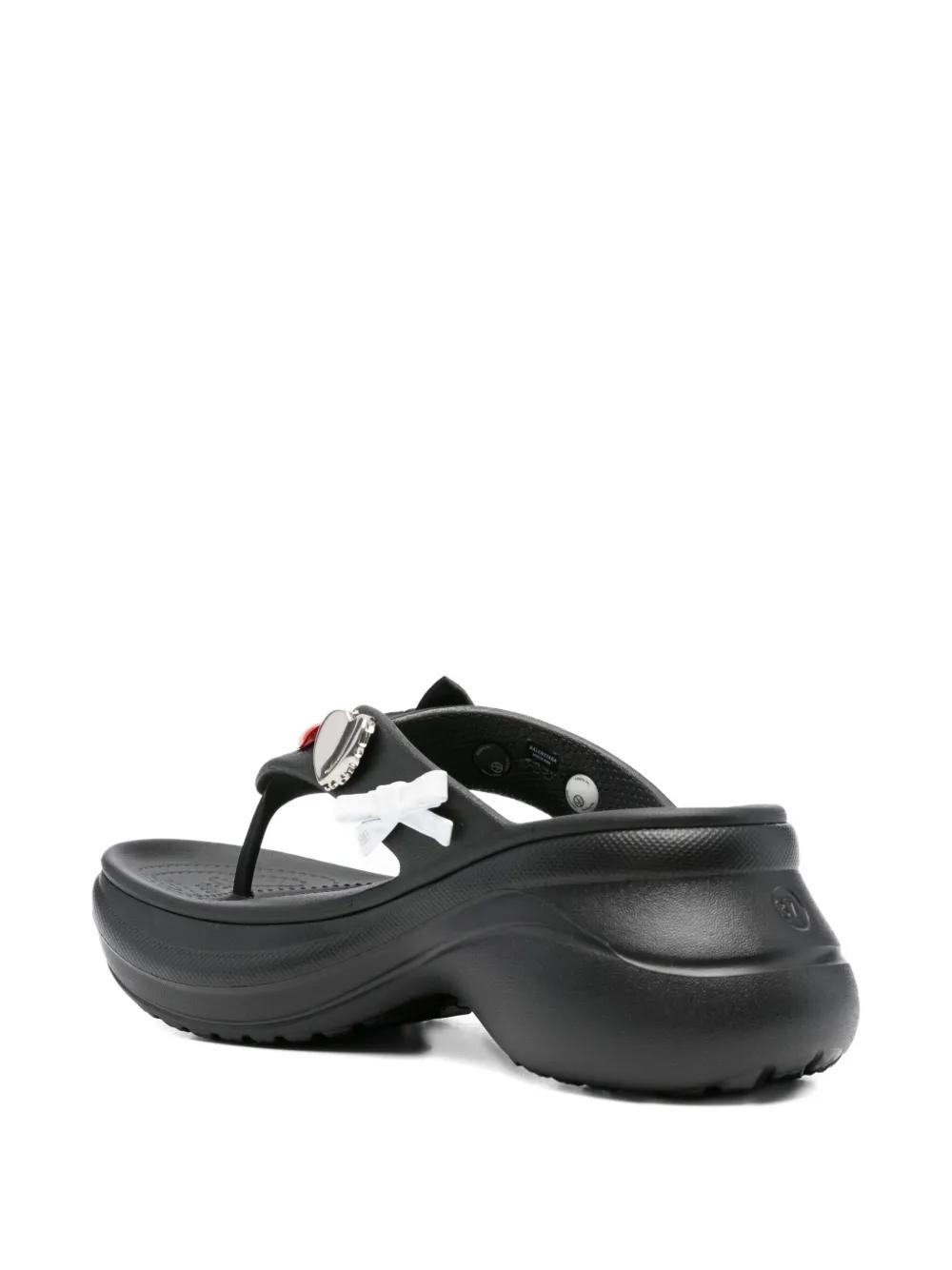 black thong strap chunky rubber sole appliqué logo bow detailing