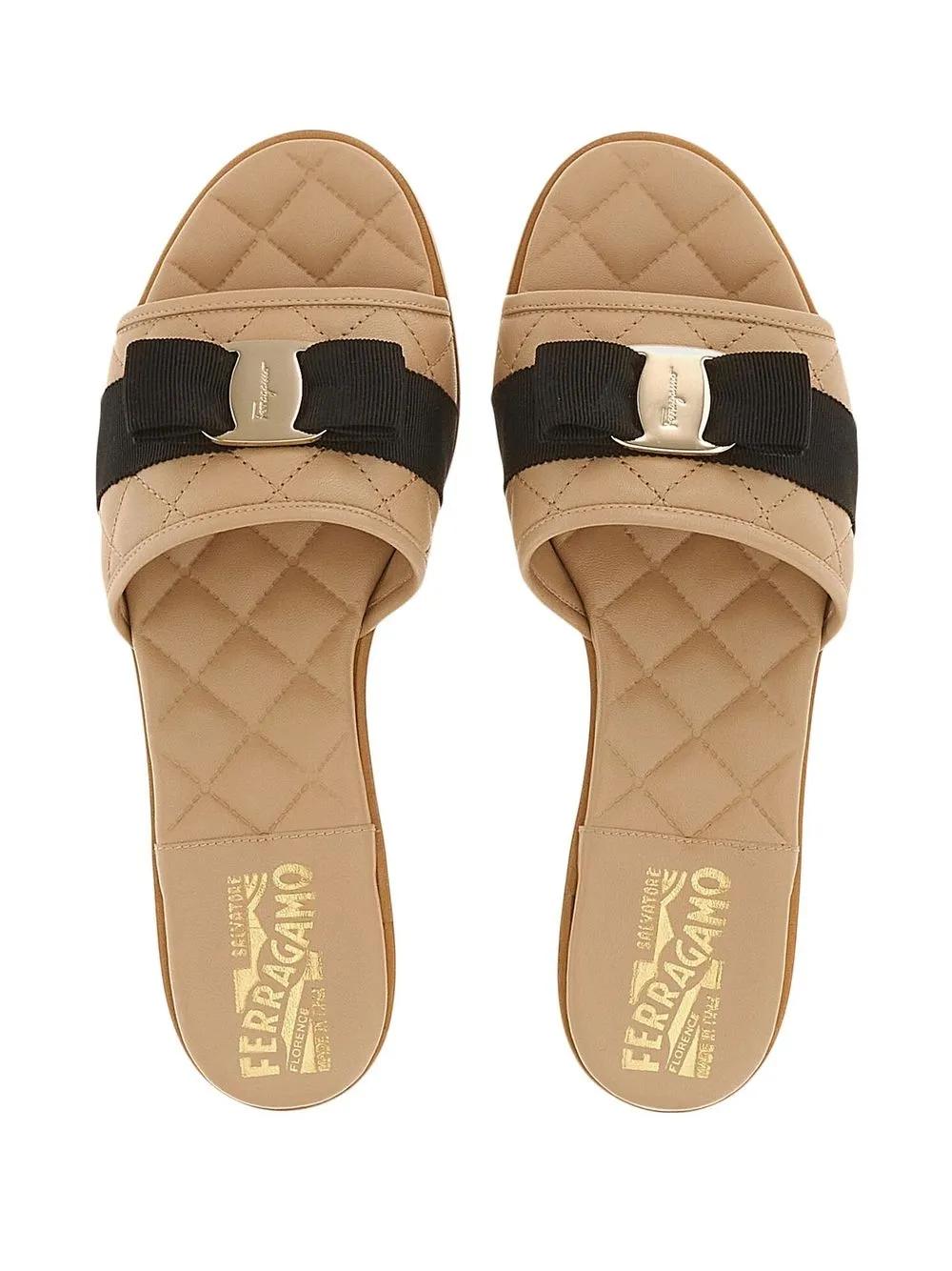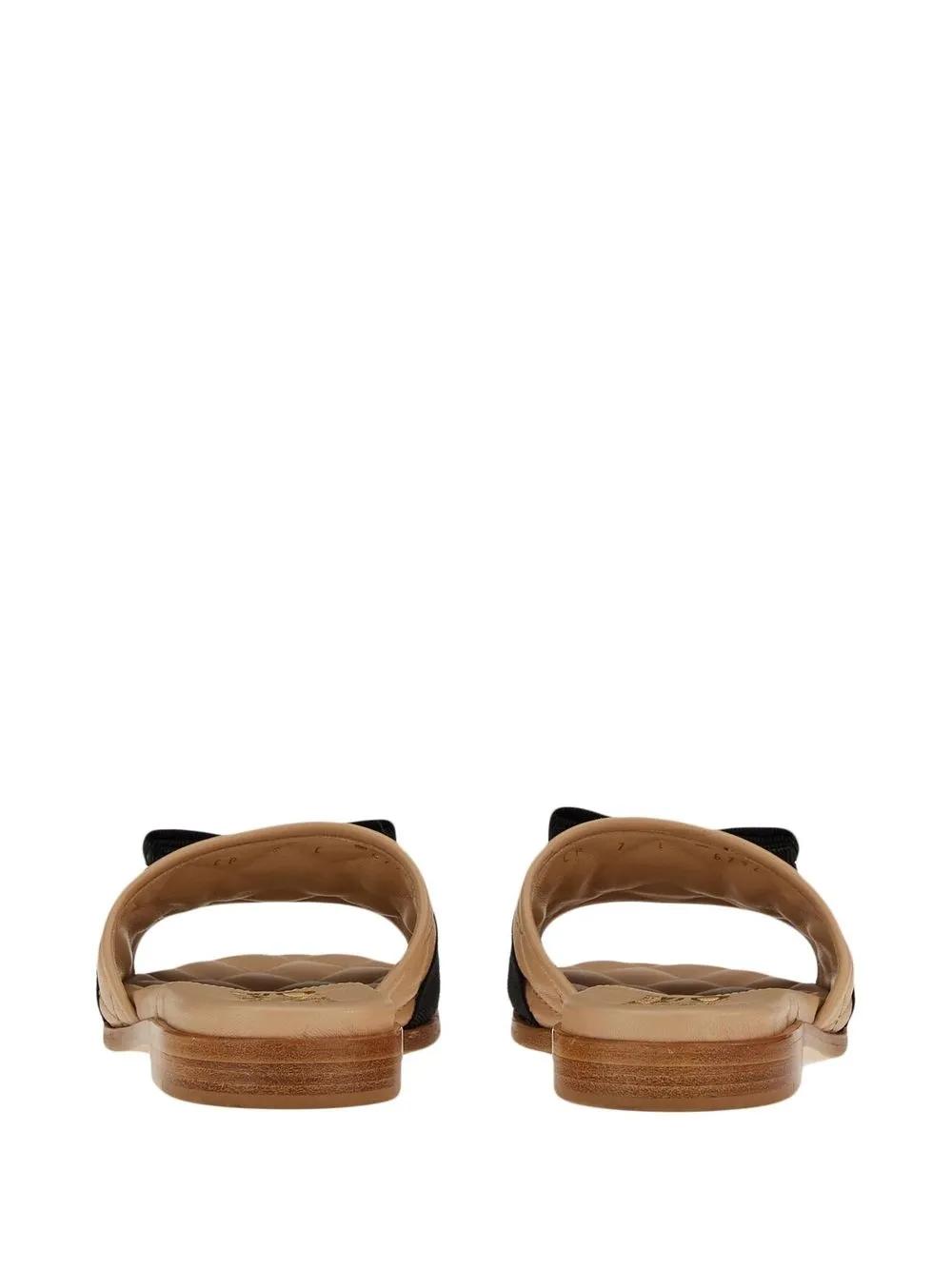 brown lambskin signature Vara bow detail quilted open toe slip-on style