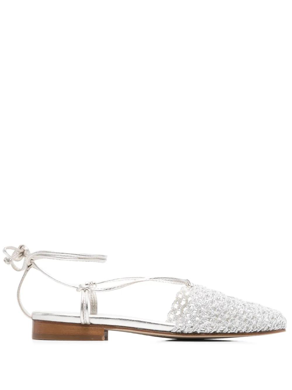 silver-tone tie-fastening ankle strap branded footbed low block heel almond toe