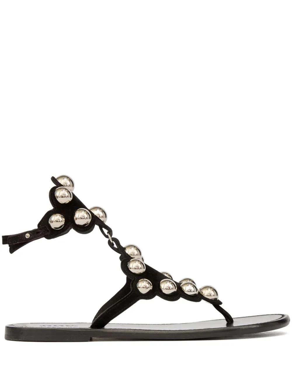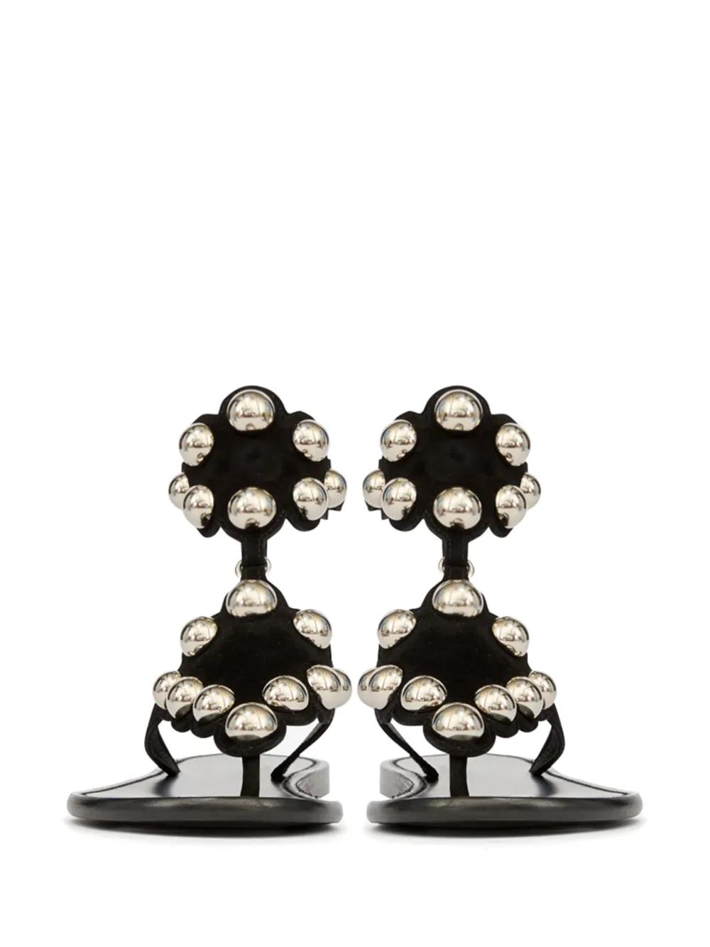 black buckle-fastening ankle strap flat leather sole branded leather insole thong strap