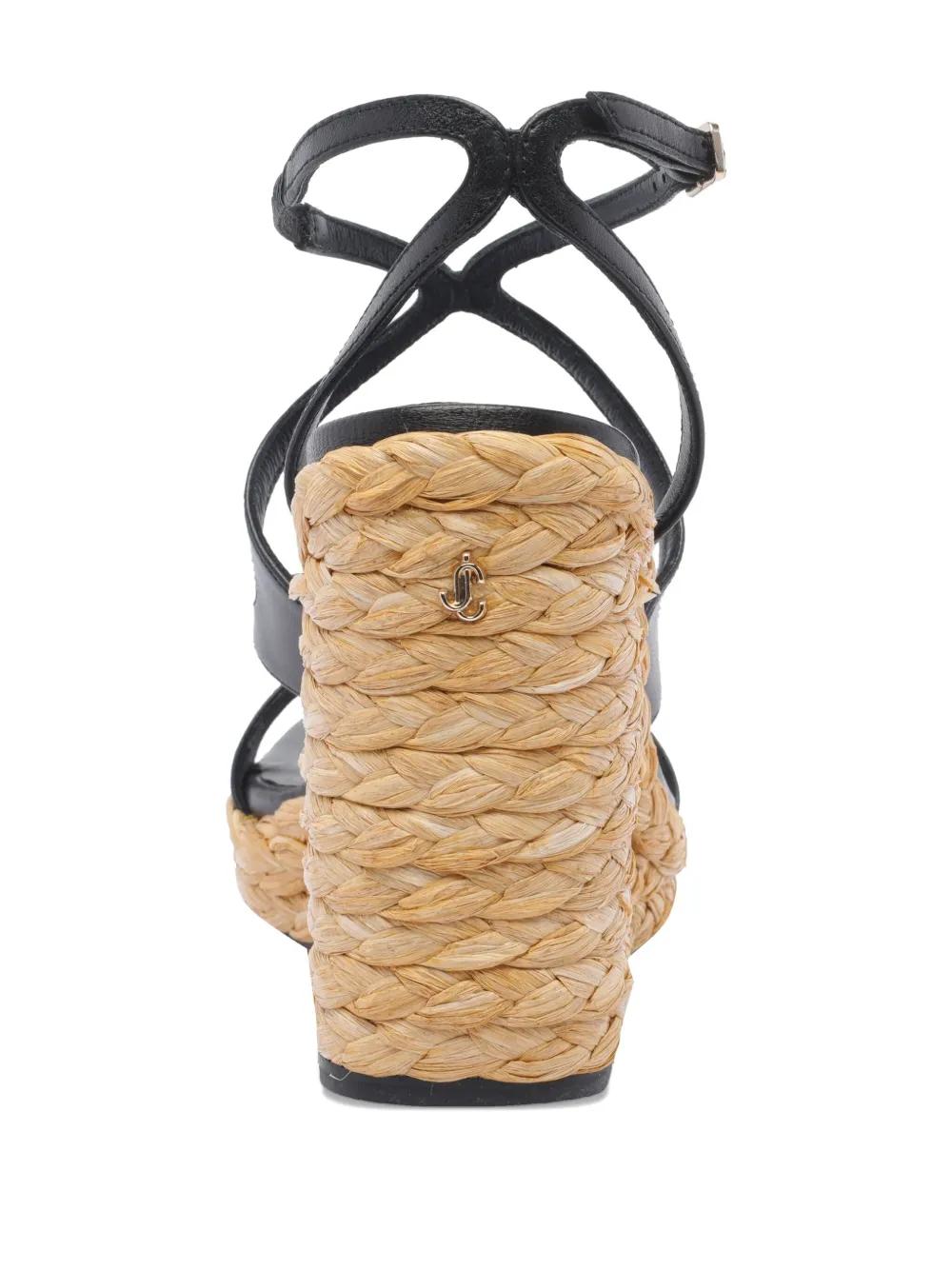 black buckle-fastening ankle strap square open toe high wedge heel branded leather insole