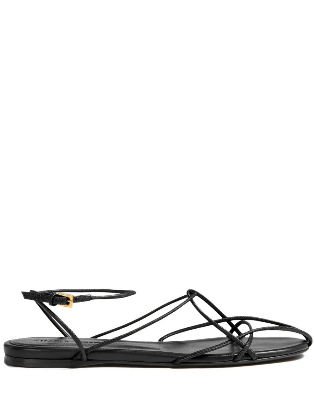 black lambskin leather lace-up design flat sole ankle strap gold-tone buckle