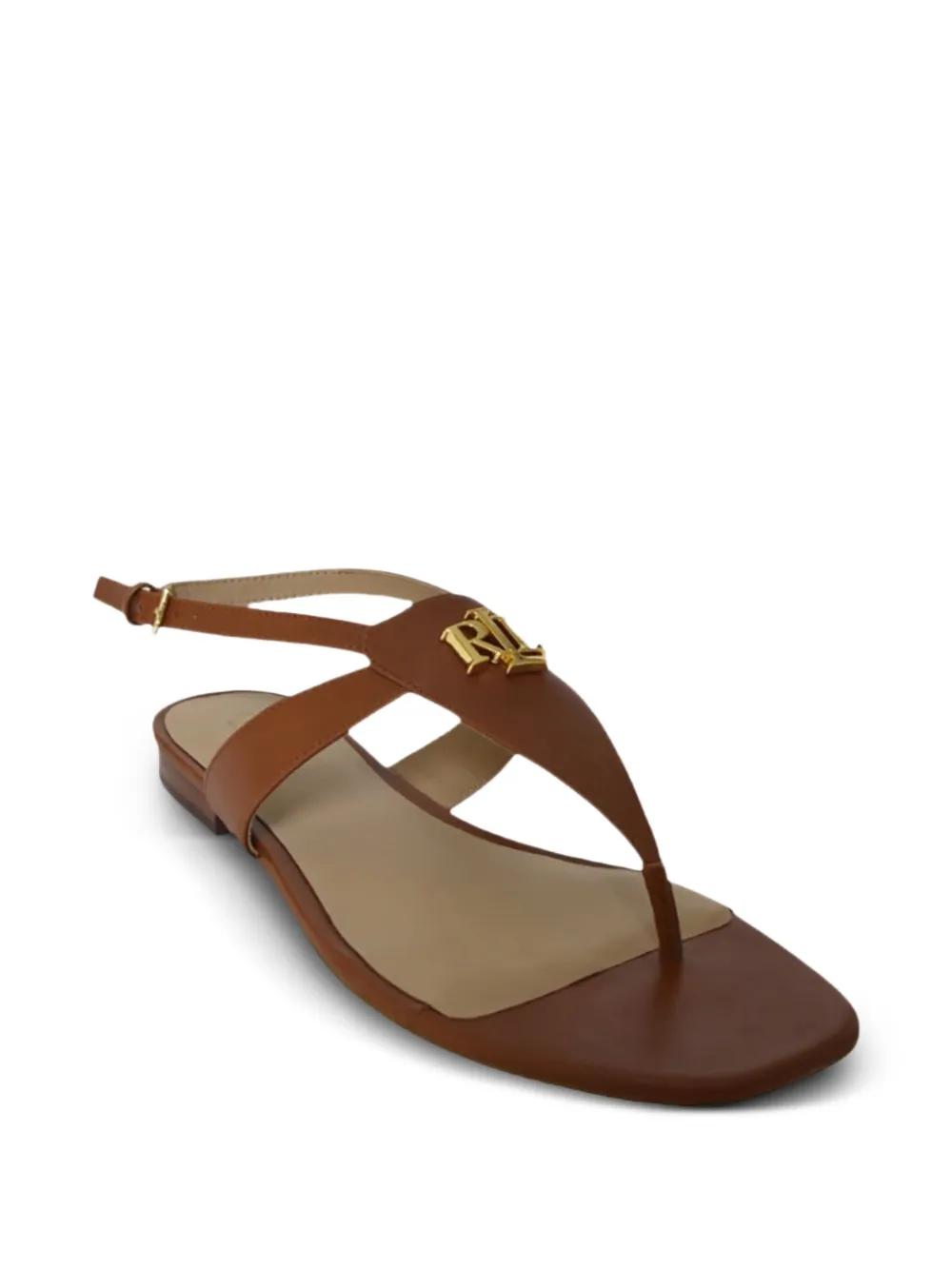 brown gold-tone logo detailing flat sole adjustable ankle strap open toe