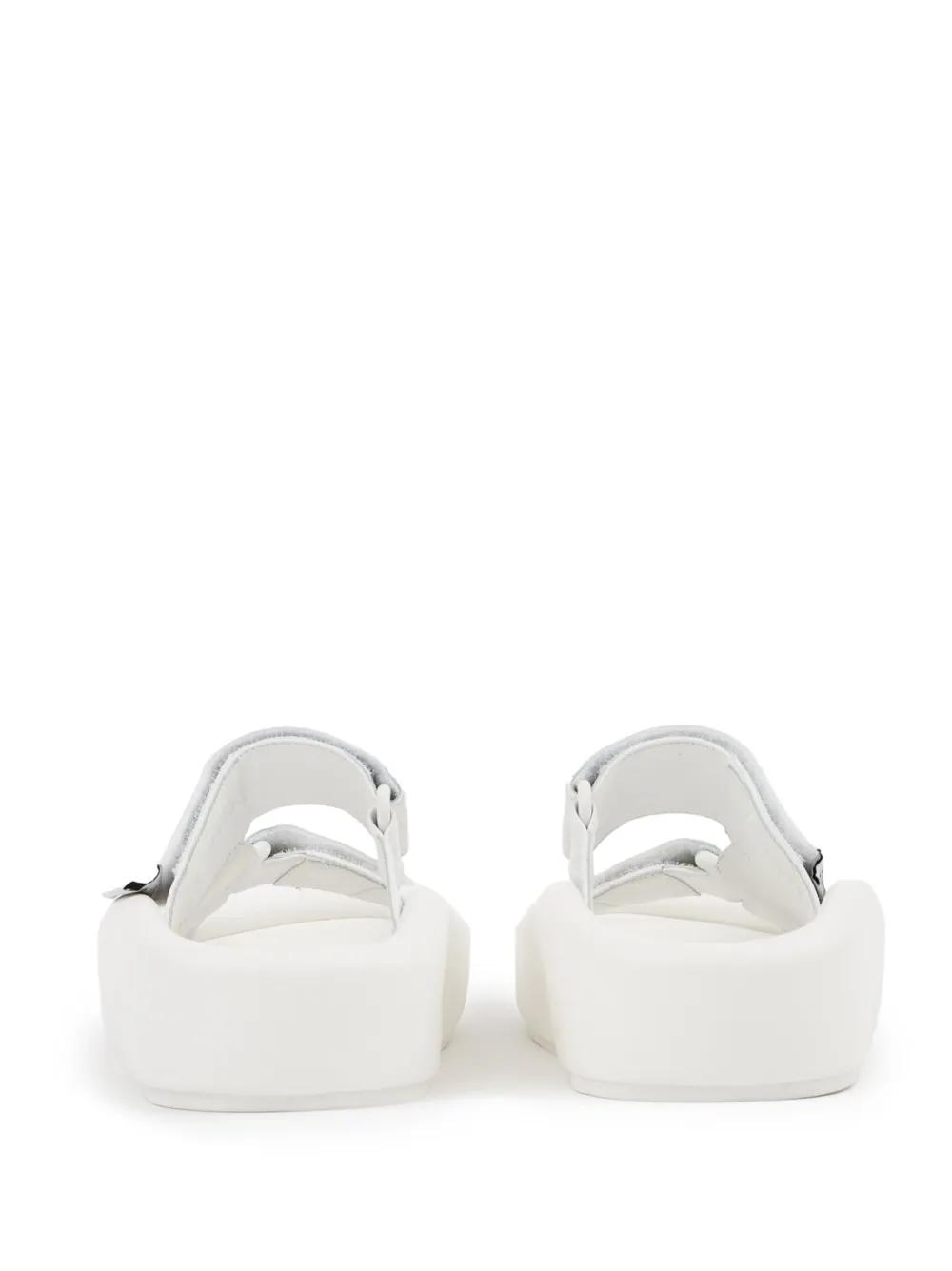 white leather mini logo tag open toe front touch-strap fastening platform sole