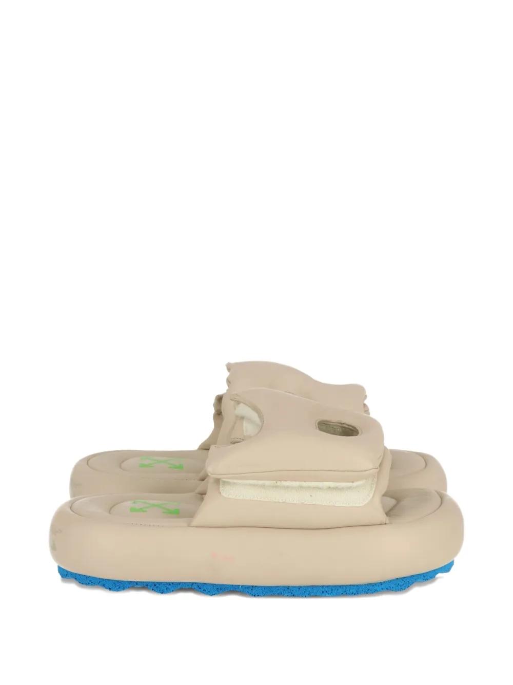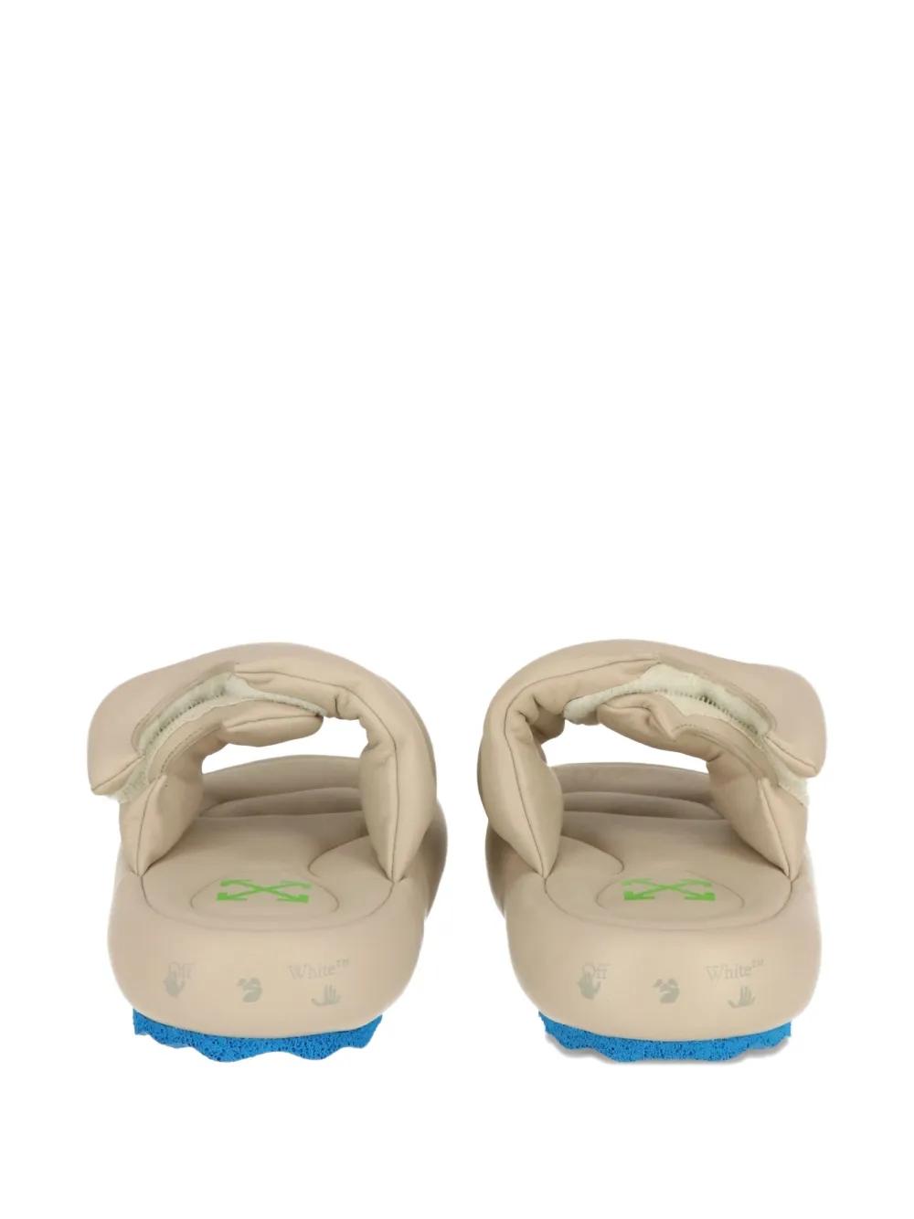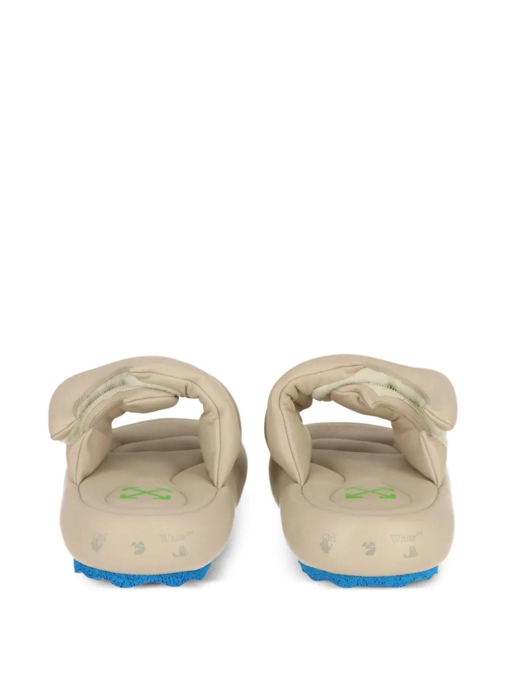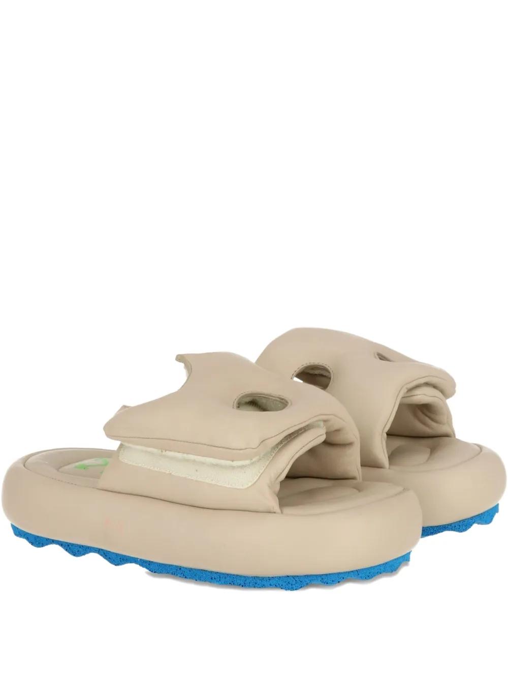 beige padded design flat rubber sole open toe touch-strap fastening embossed logo