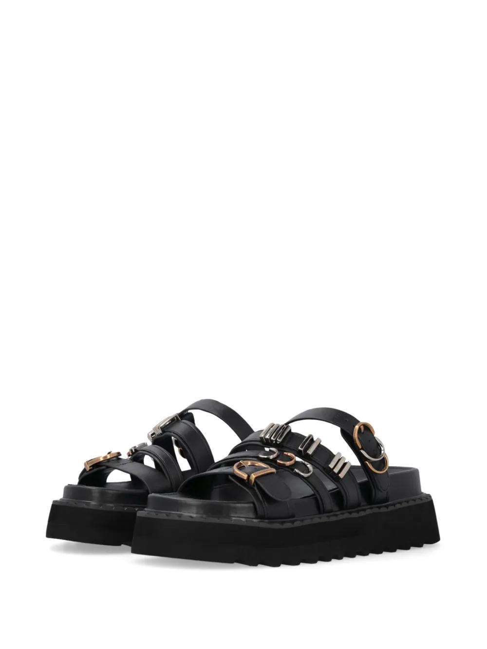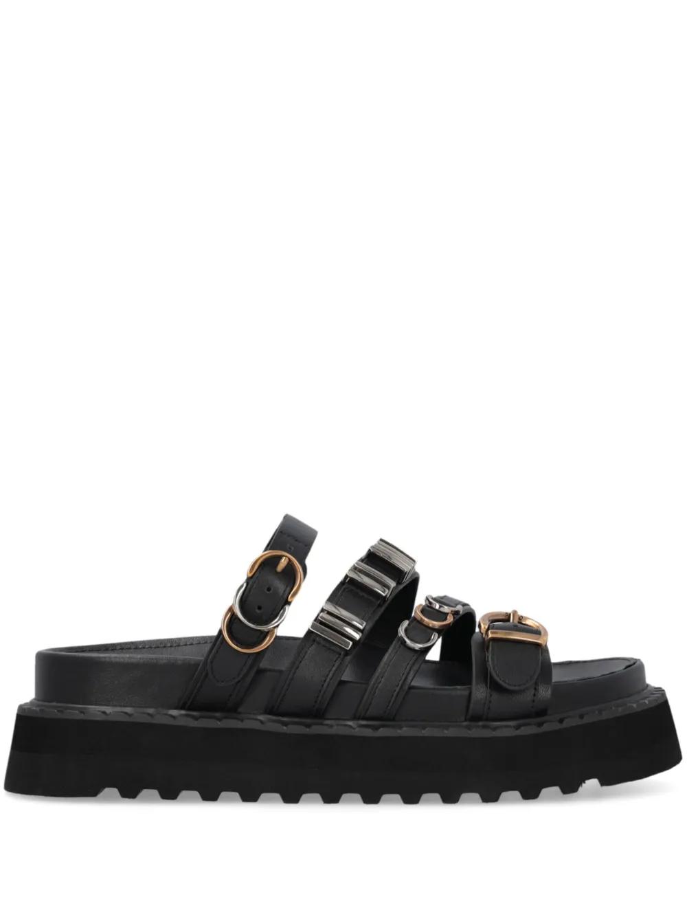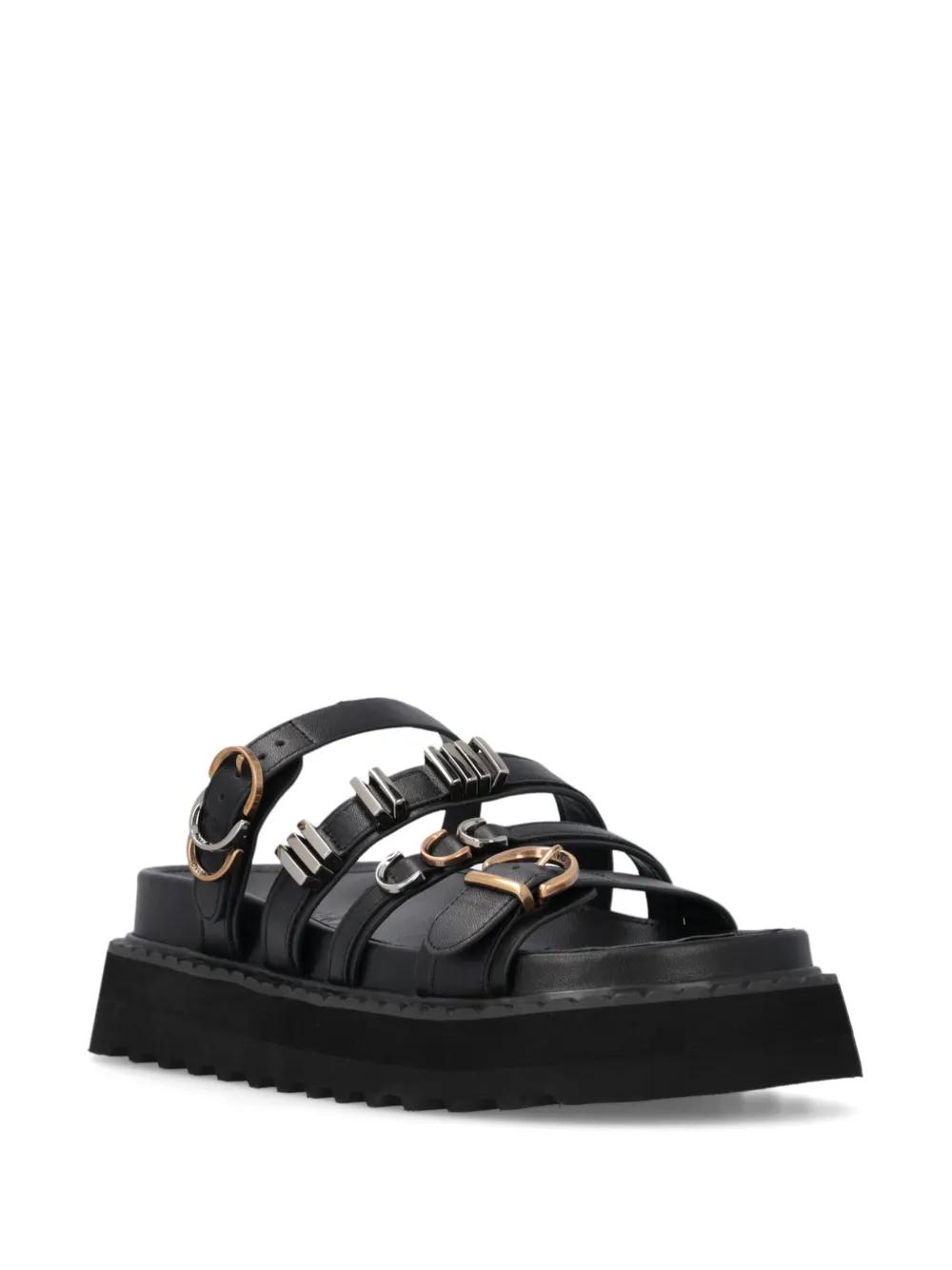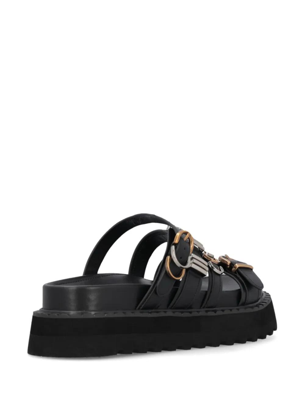 black side buckle fastening branded leather insole round open toe chunky rubber sole