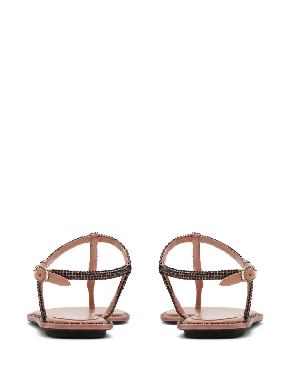 brown calf leather crystal embellishment thong strap open toe buckle-fastening ankle strap flat leather sole