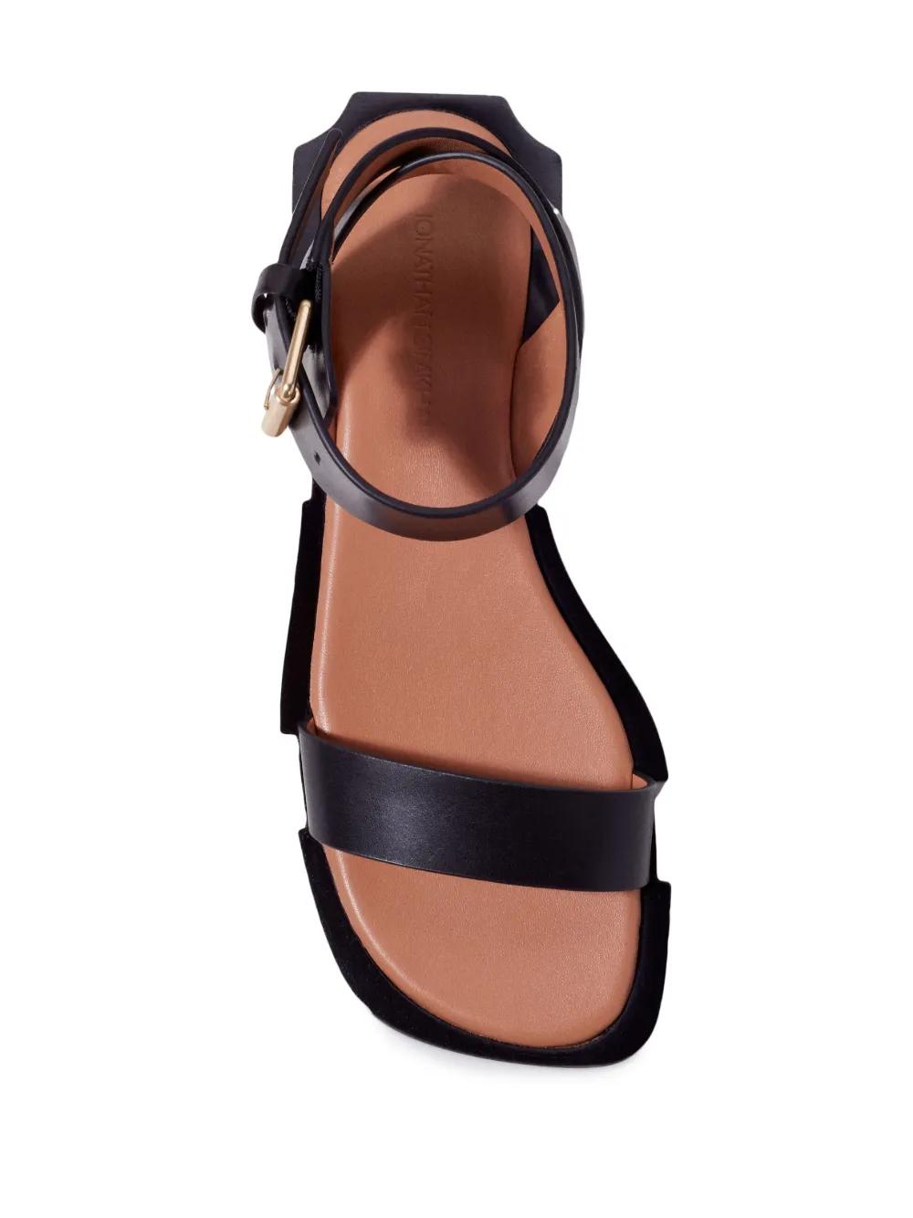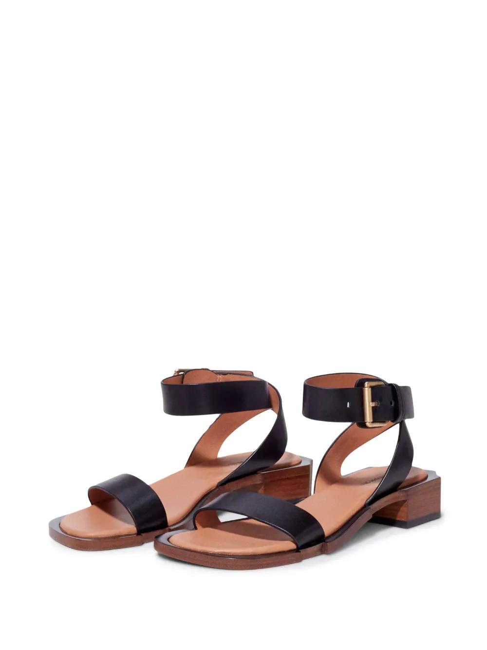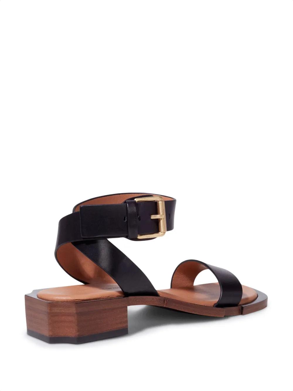 black calf leather buckle-fastening ankle strap gold-tone hardware open toe low block heel