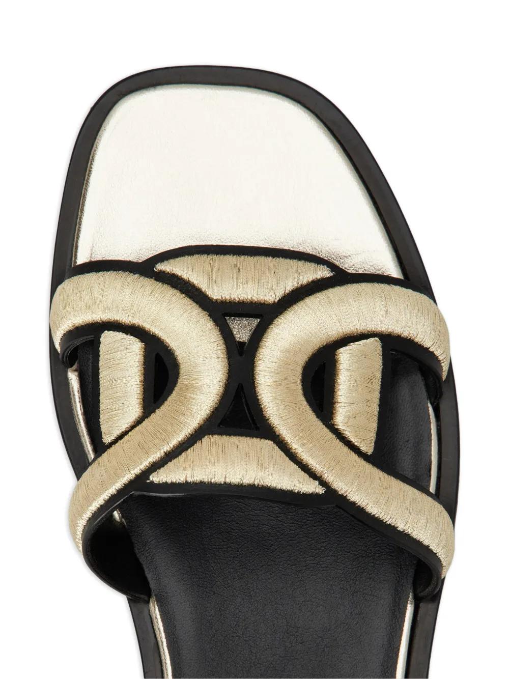 black gold-tone embroidered strap flat sole open toe slip-on style leather