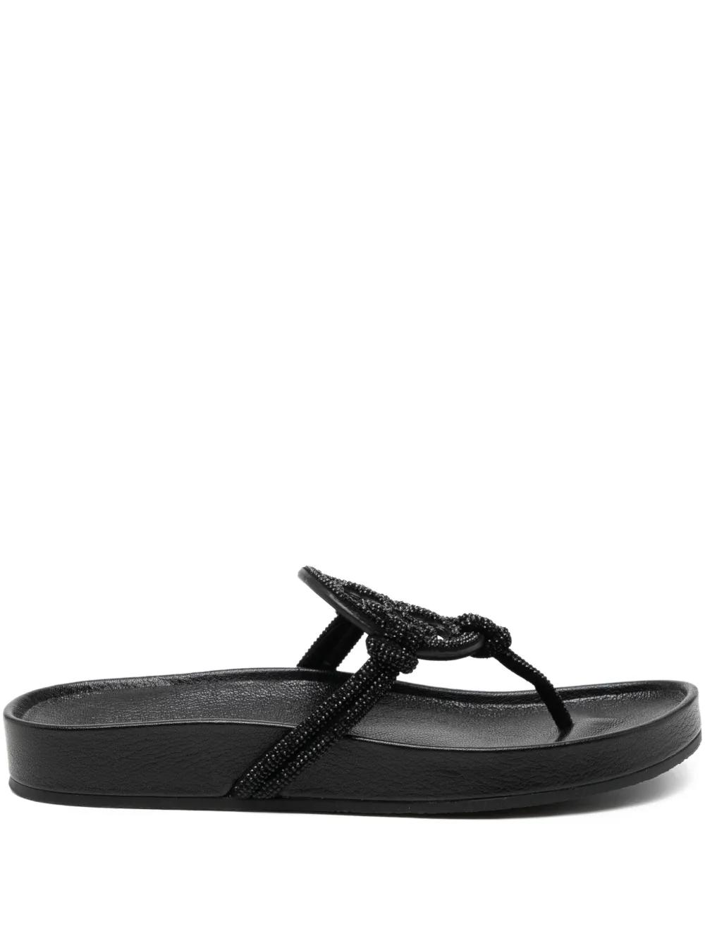 silver thin straps ankle tie detail flat sole gold-tone embellishment