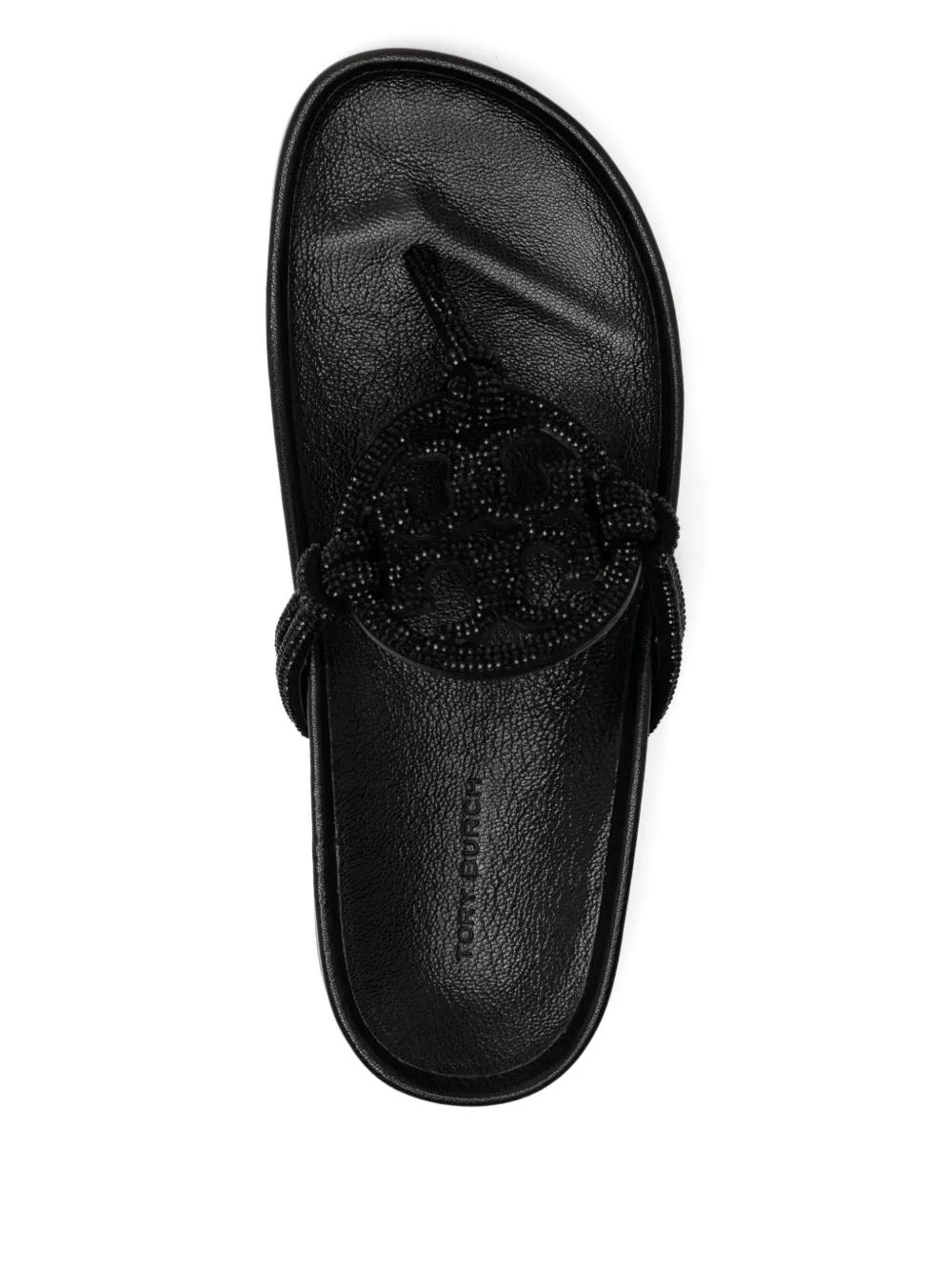 brown leather laser-cut detail logo patch to the front thong strap branded leather insole rubber outsole slip-on style