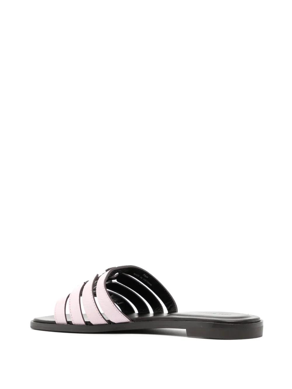 black calf leather crossover strap at the toe buckle-fastening ankle strap round open toe branded leather insole flat rubber sole