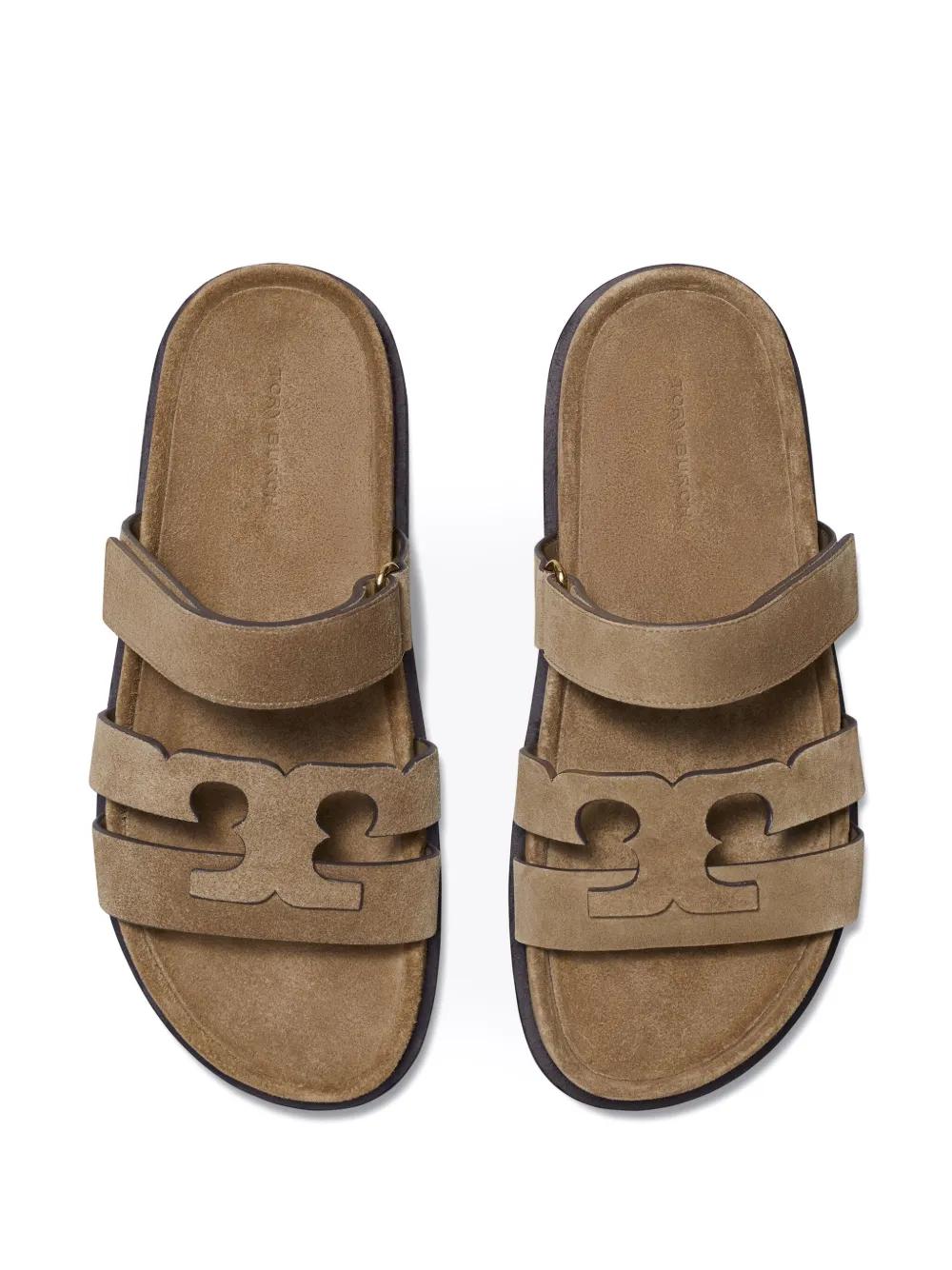 brown slip-on style touch-strap fastening appliqué logo flat rubber sole