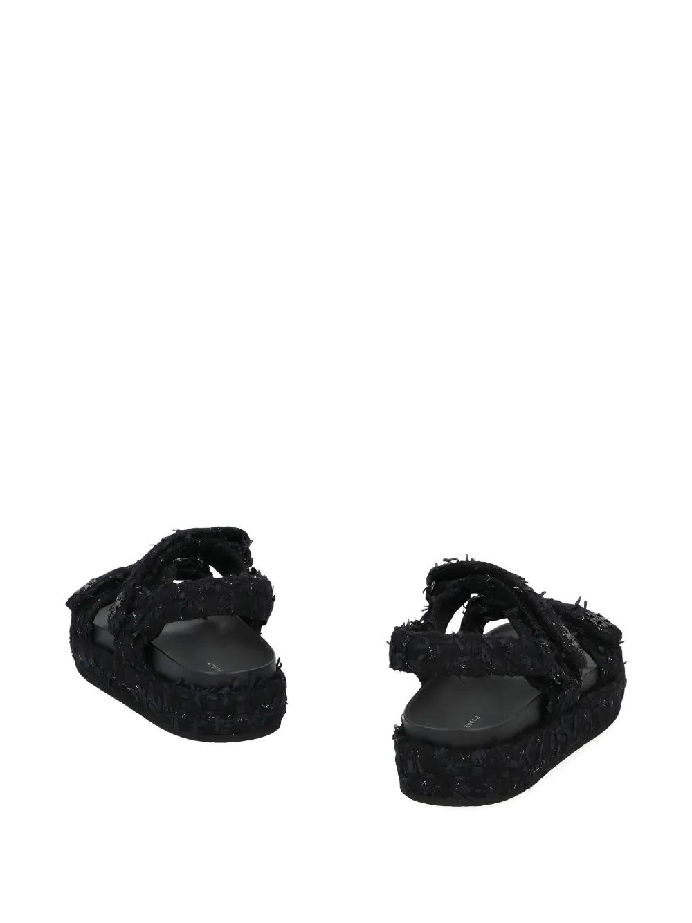dark blue logo detail platform sole wool blend open toe strap style