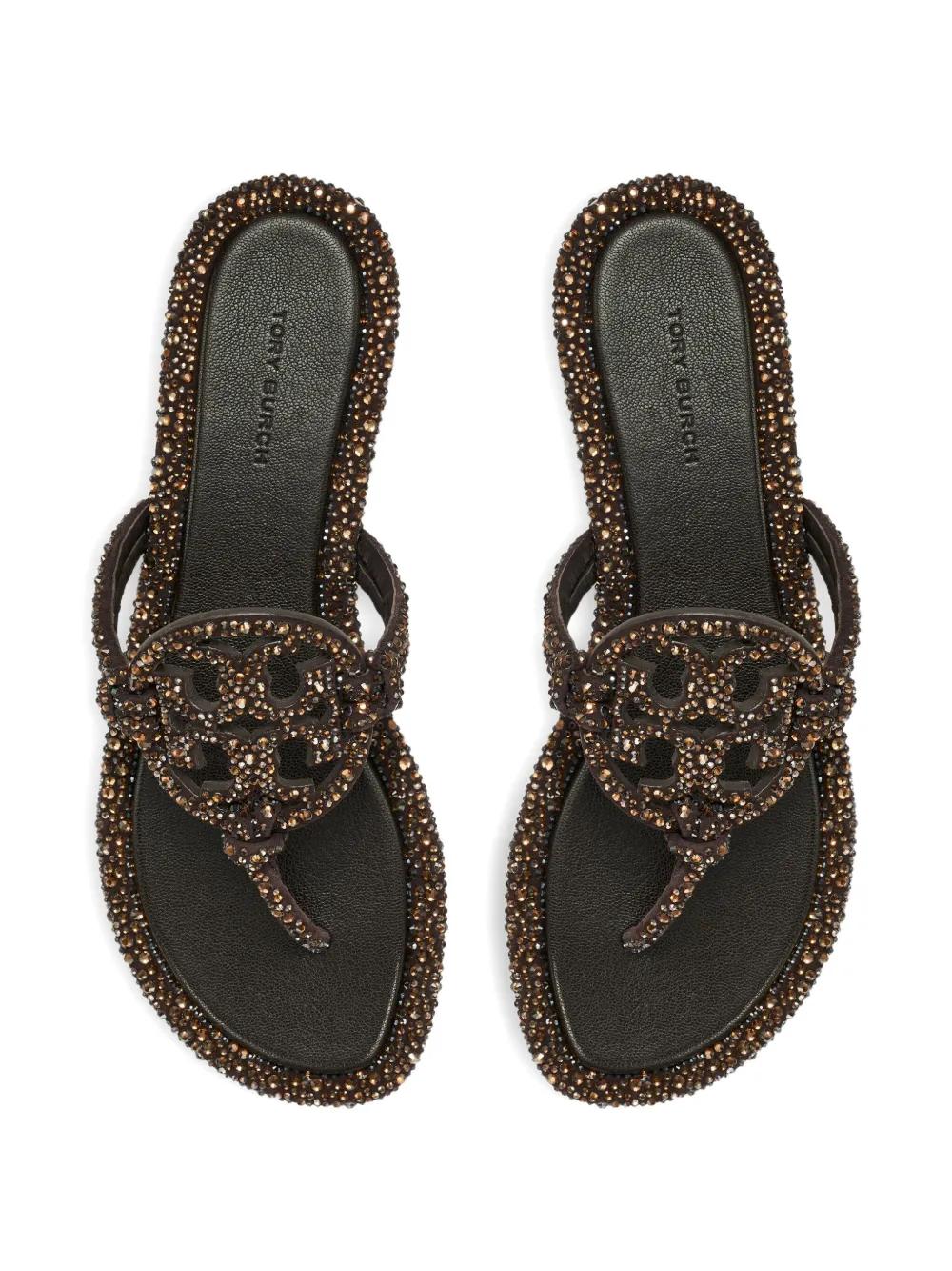 cocoa suede crystal embellishment knotted detail thong strap flat sole