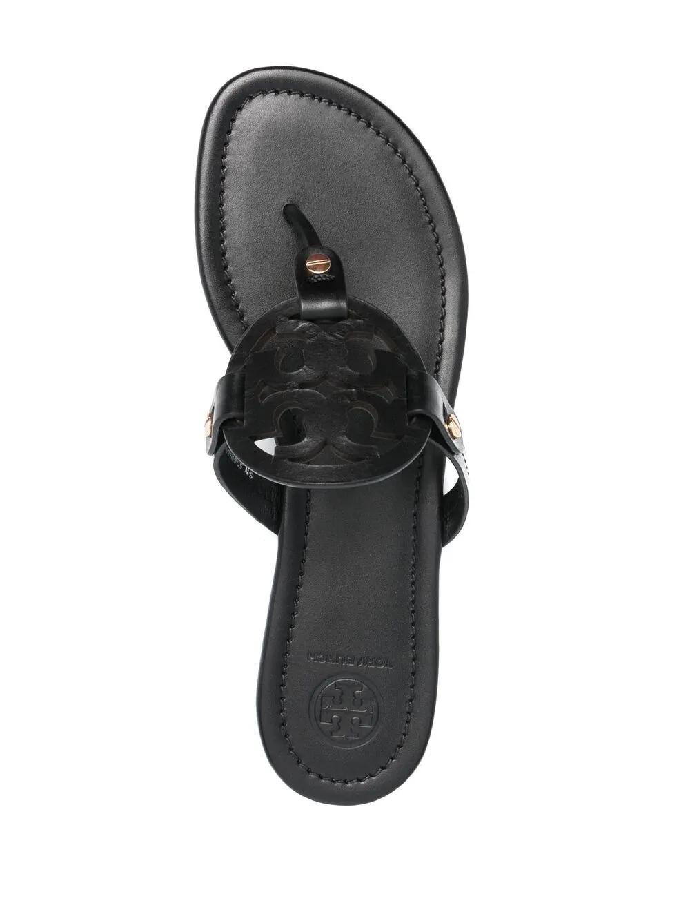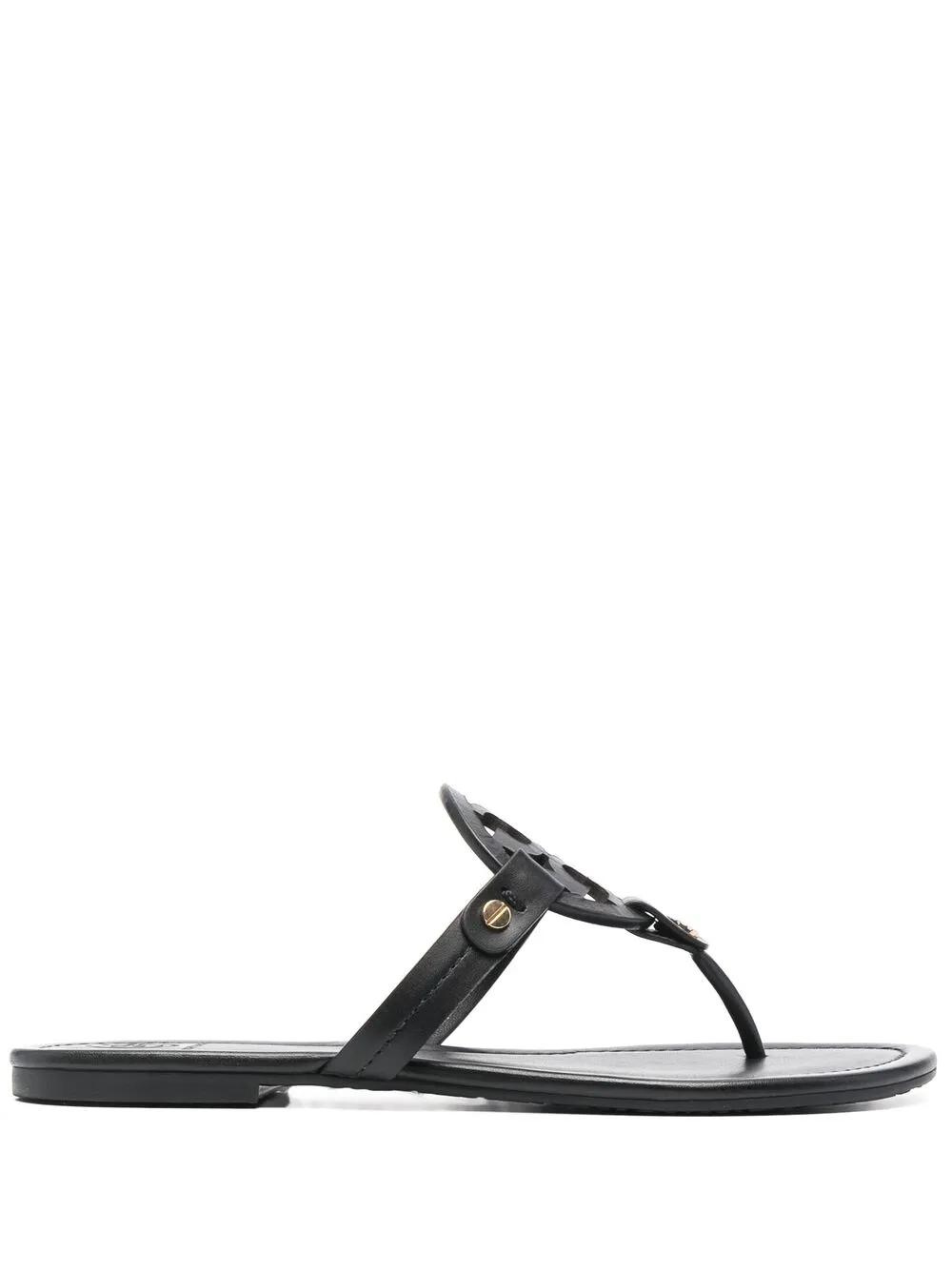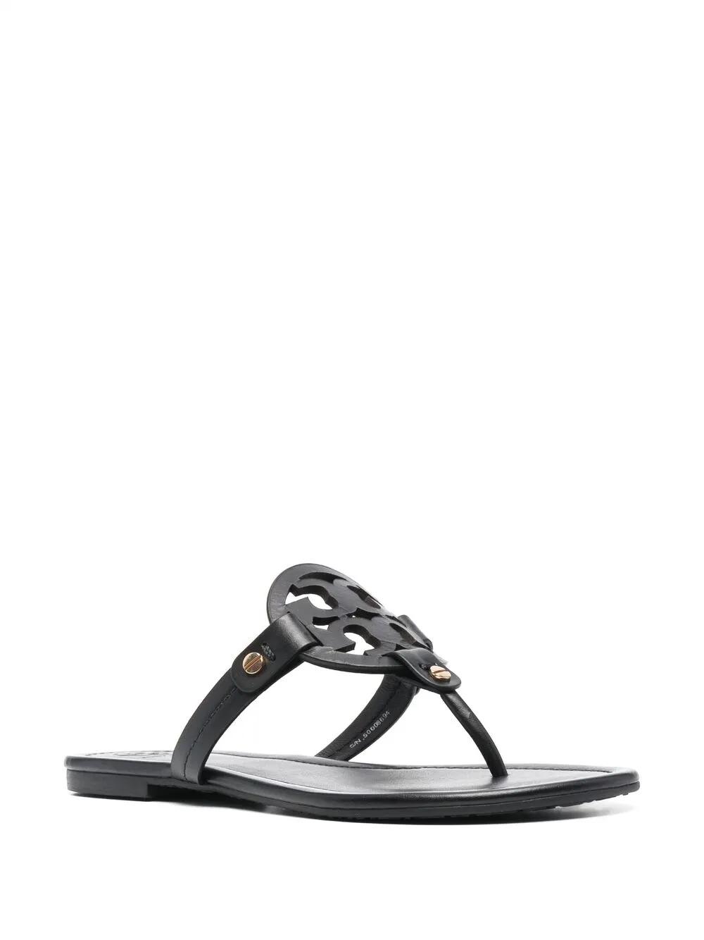 brown leather laser-cut detail logo patch to the front thong strap branded leather insole rubber outsole slip-on style