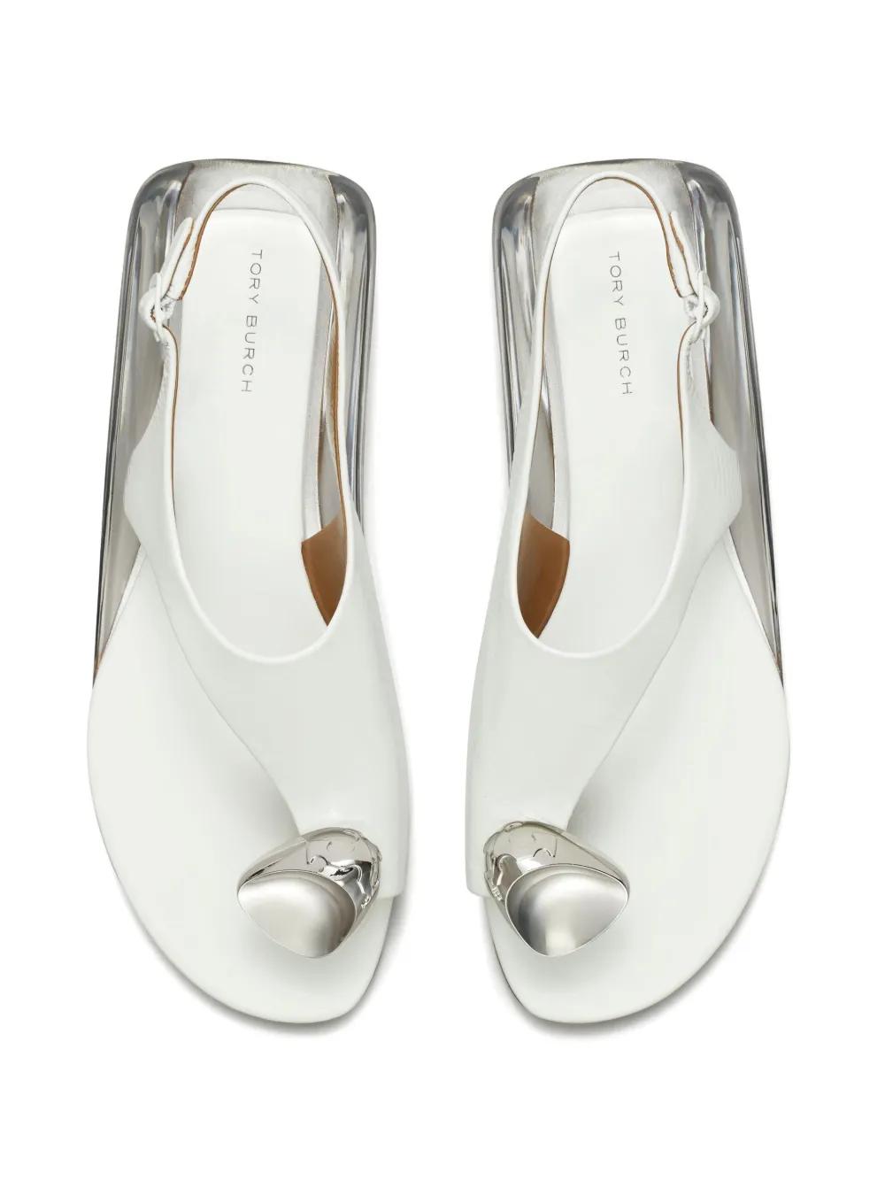 white leather crinkled finish palladium-tone hardware transparent heel ankle strap leather sole