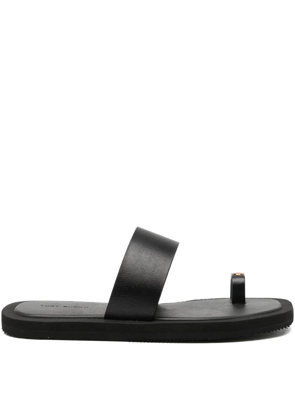 dulce de leche leather signature Double T motif open toe branded leather insole flat rubber sole