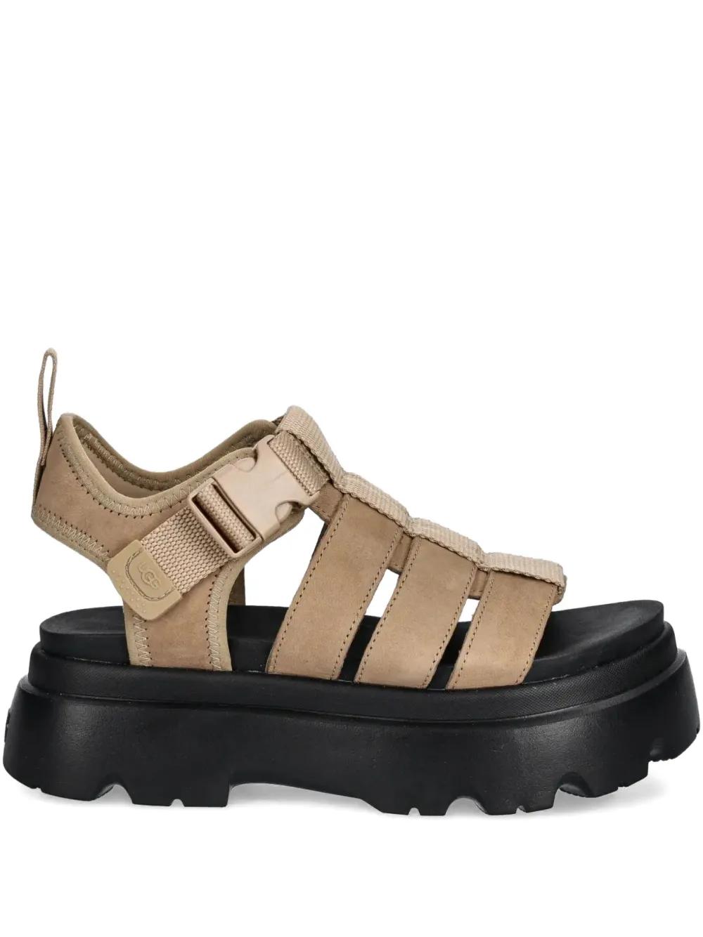 sand beige clasp fastening platform sole pull-tab at the heel round open toe