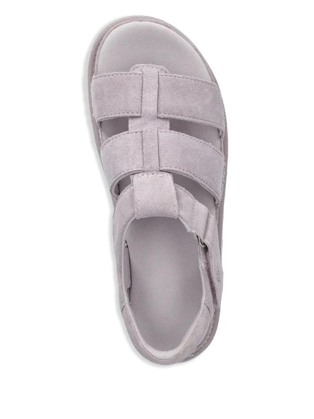 lilac purple side touch-strap fastening flat rubber sole logo patch to the rear debossed logo to the side