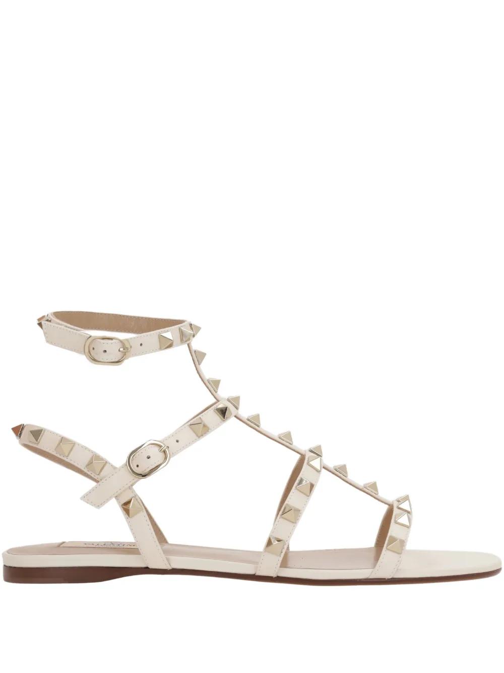 ivory leather studded embellishment ankle strap buckle fastening flat sole