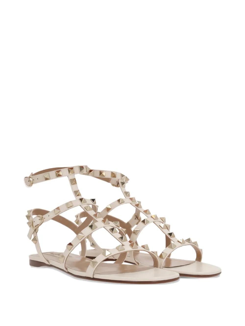 Valentino Garavani studded-embellishment ankle-strap flat sandals - Neutrals