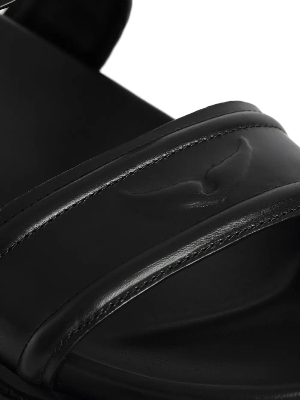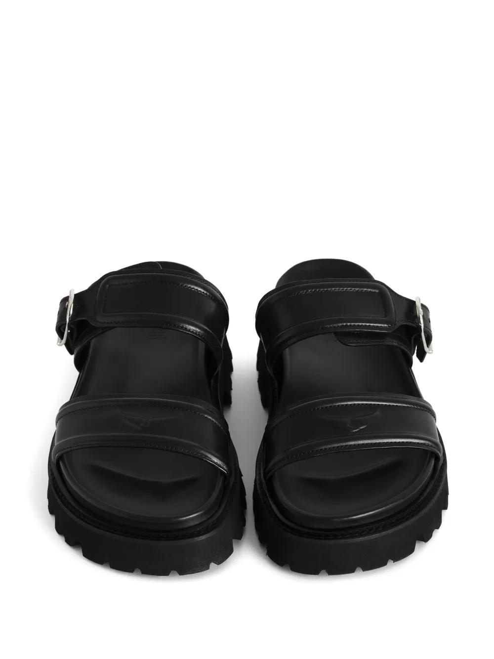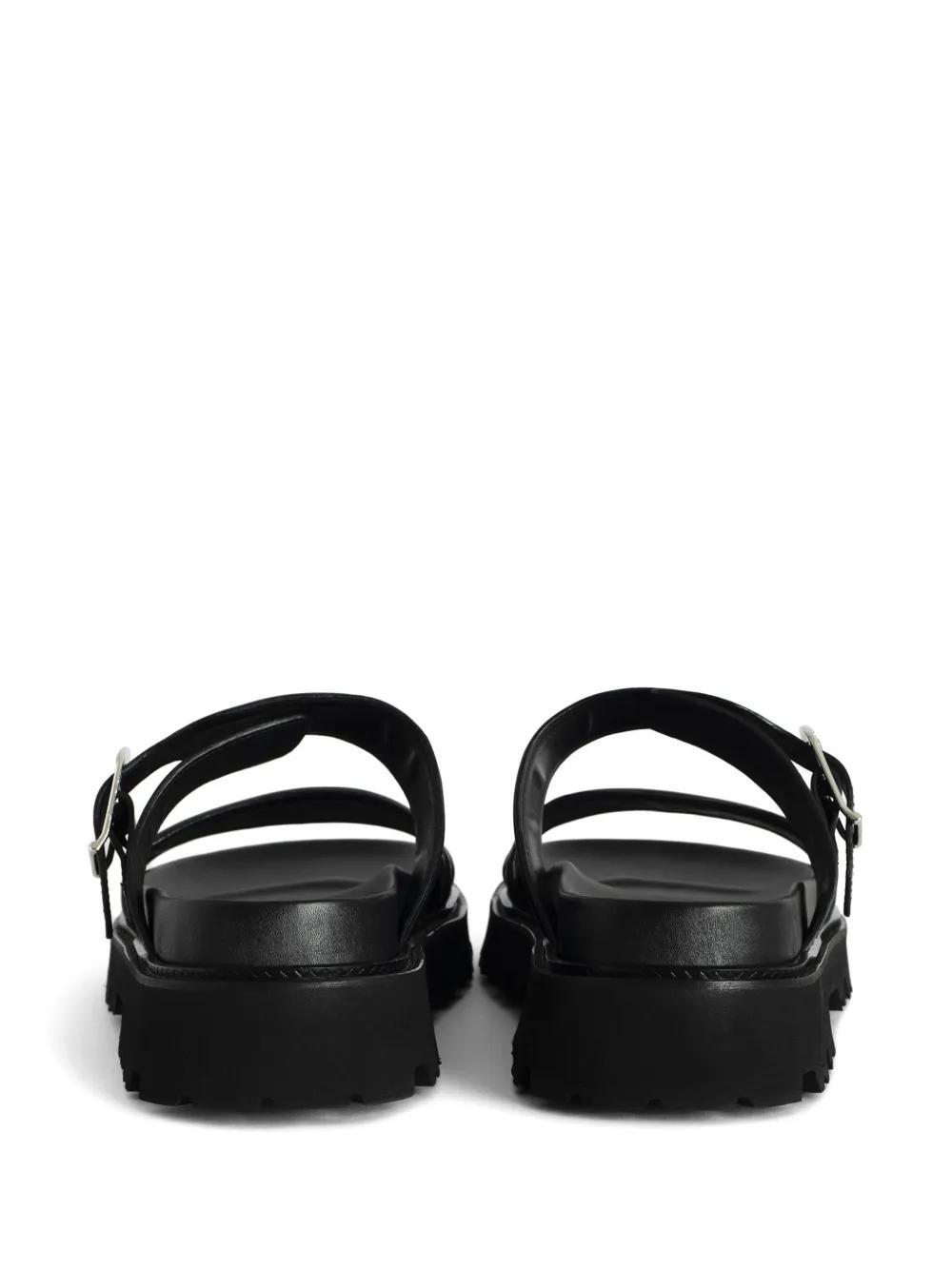 black side buckle fastening moulded footbed round open toe chunky rubber sole
