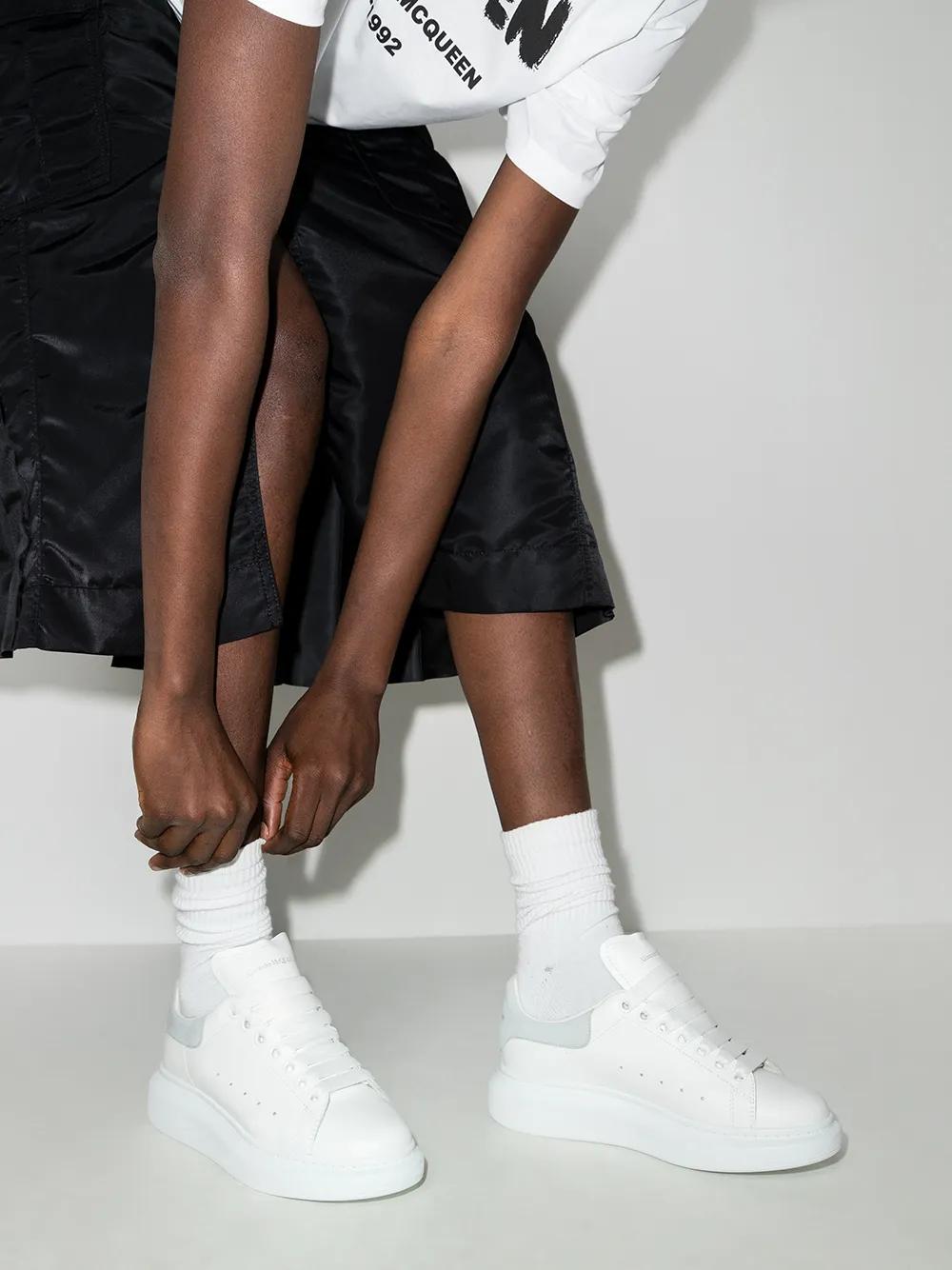 white/dove grey leather round toe front lace-up fastening logo-print tongue branded insole padded ankle contrasting heel counter oversize rubber sole