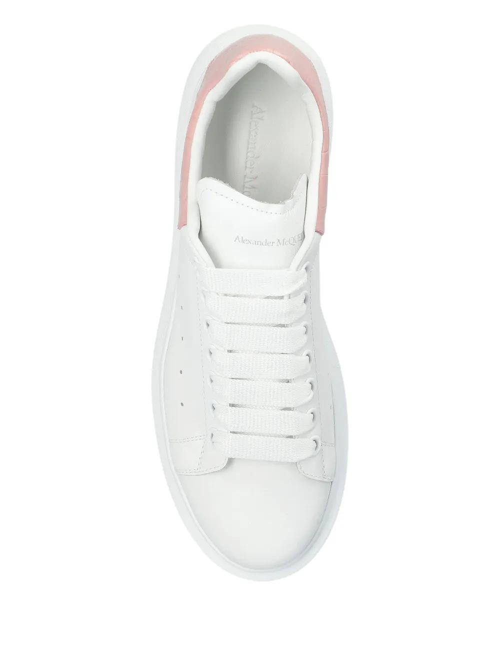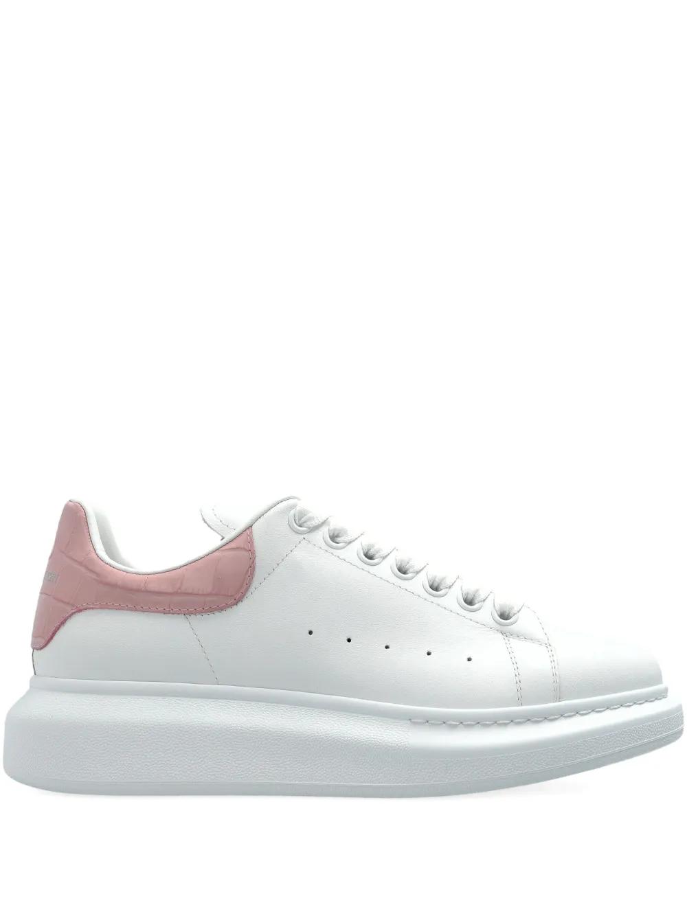 Alexander McQueen Oversized leather crocodile-effect heel sneakers - White