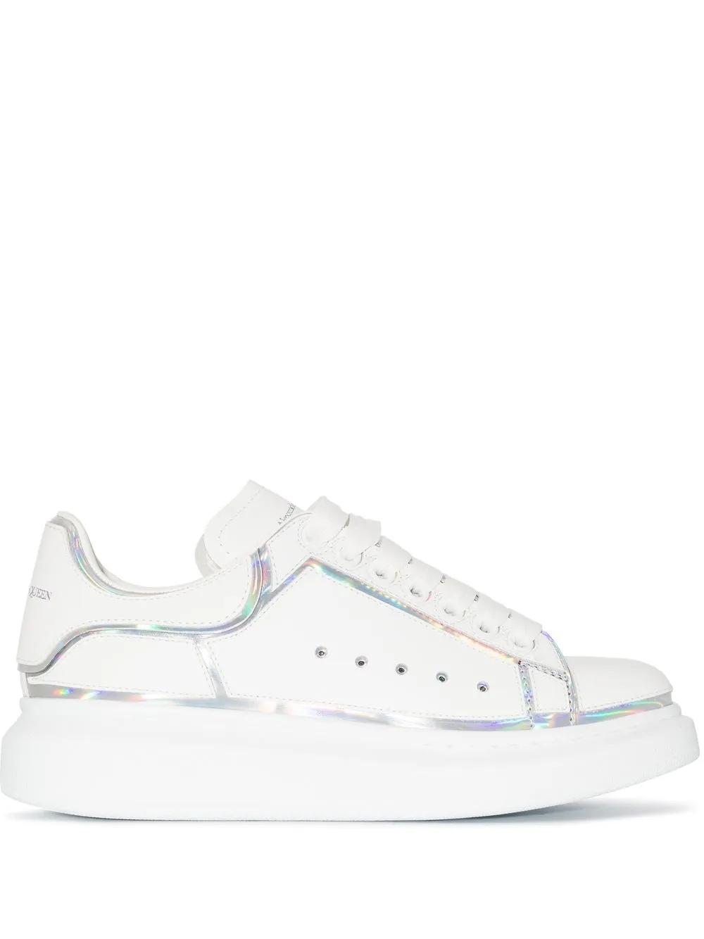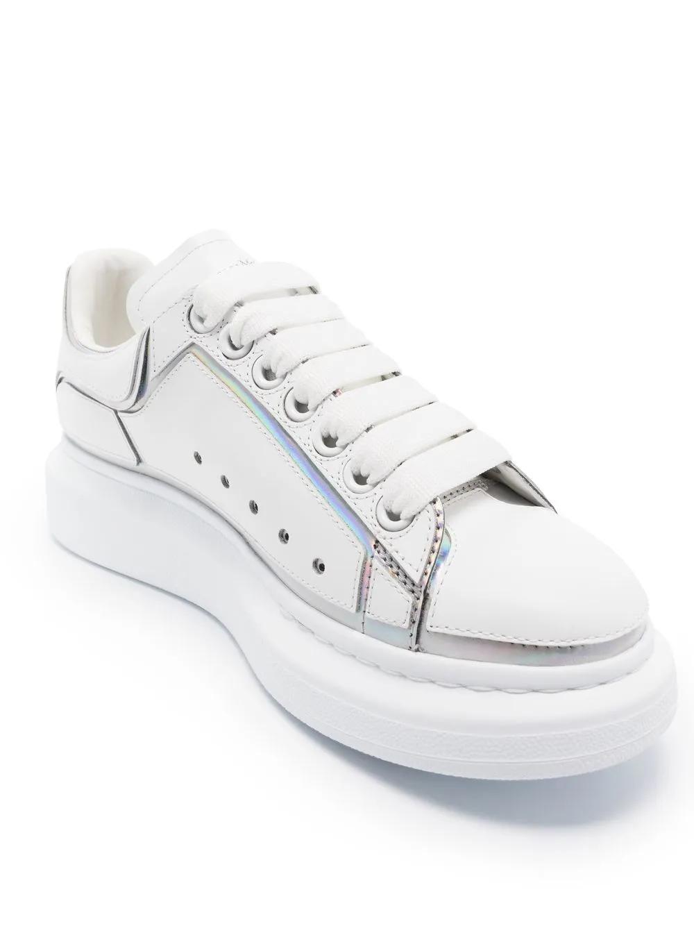 white silver-tone leather panelled design contrasting trim branded heel counter round toe front lace-up fastening chunky rubber sole